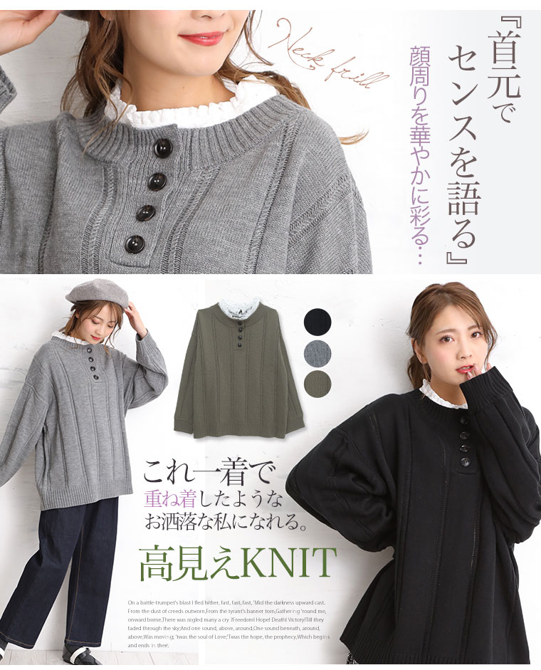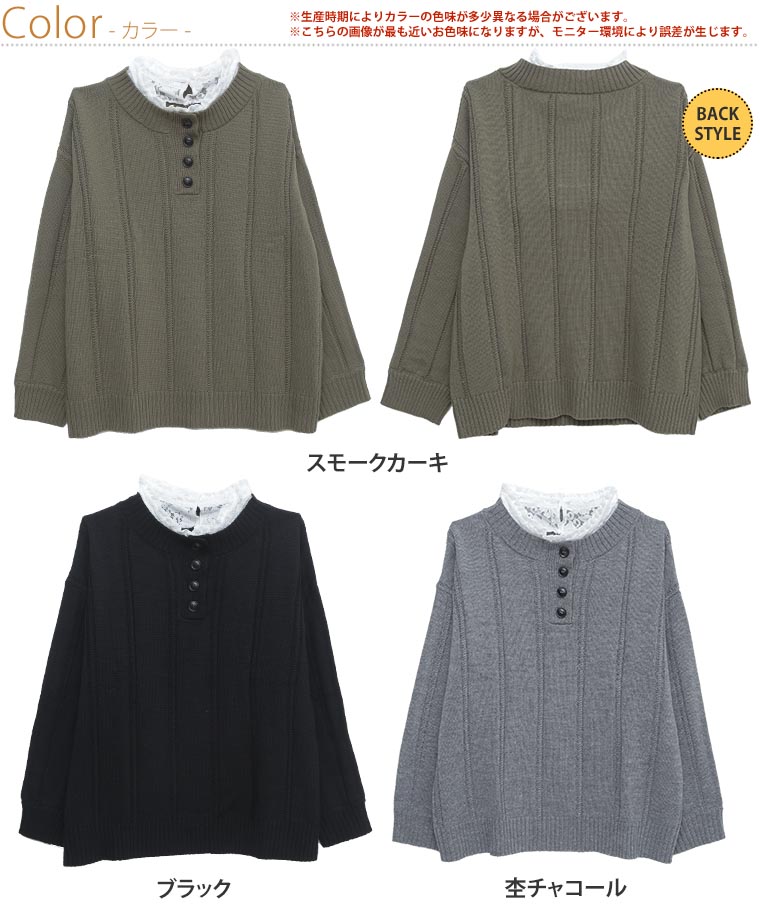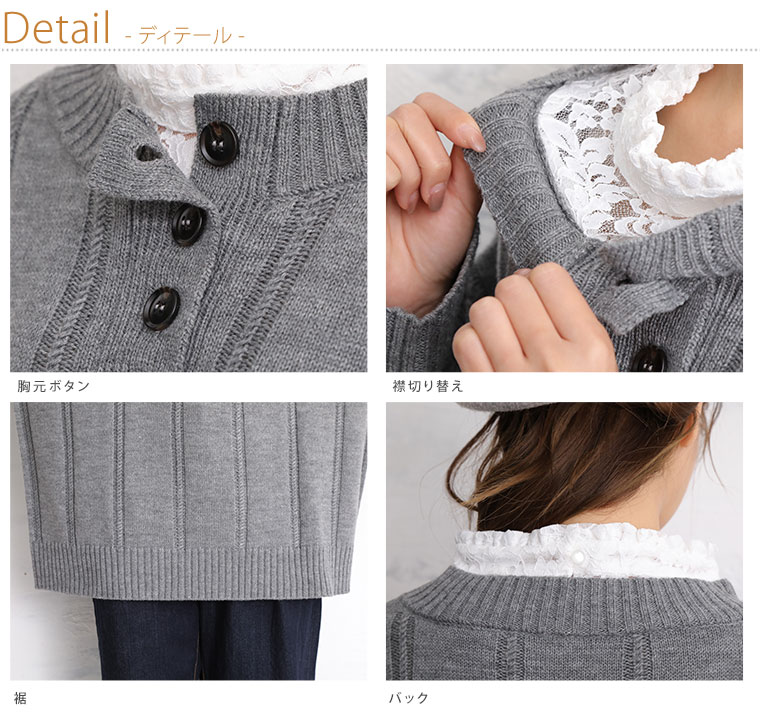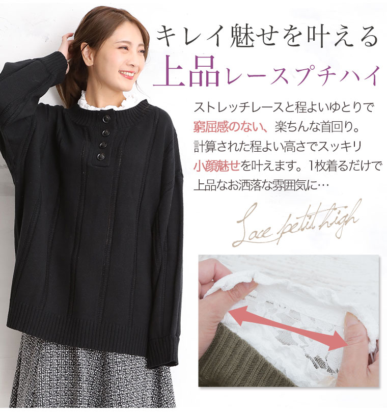 一枚着るだけで上品にコーディネート♪レースプチハイニット