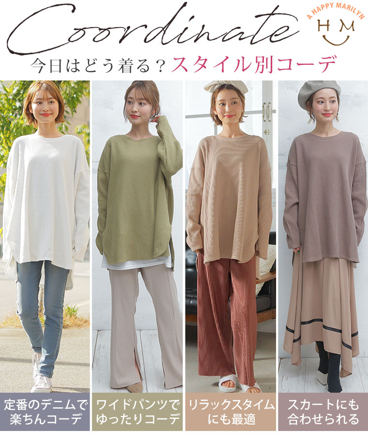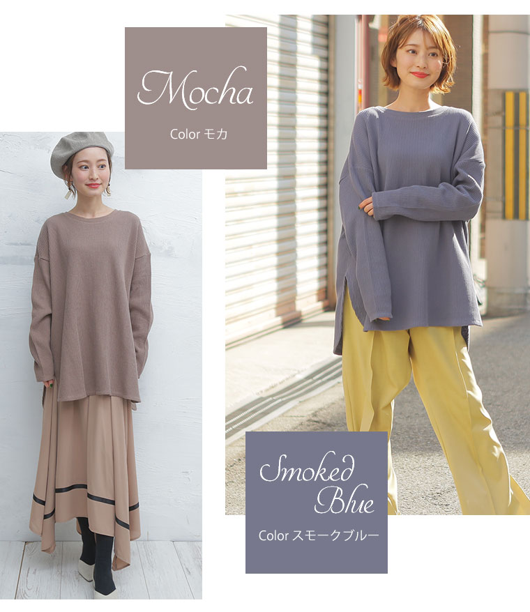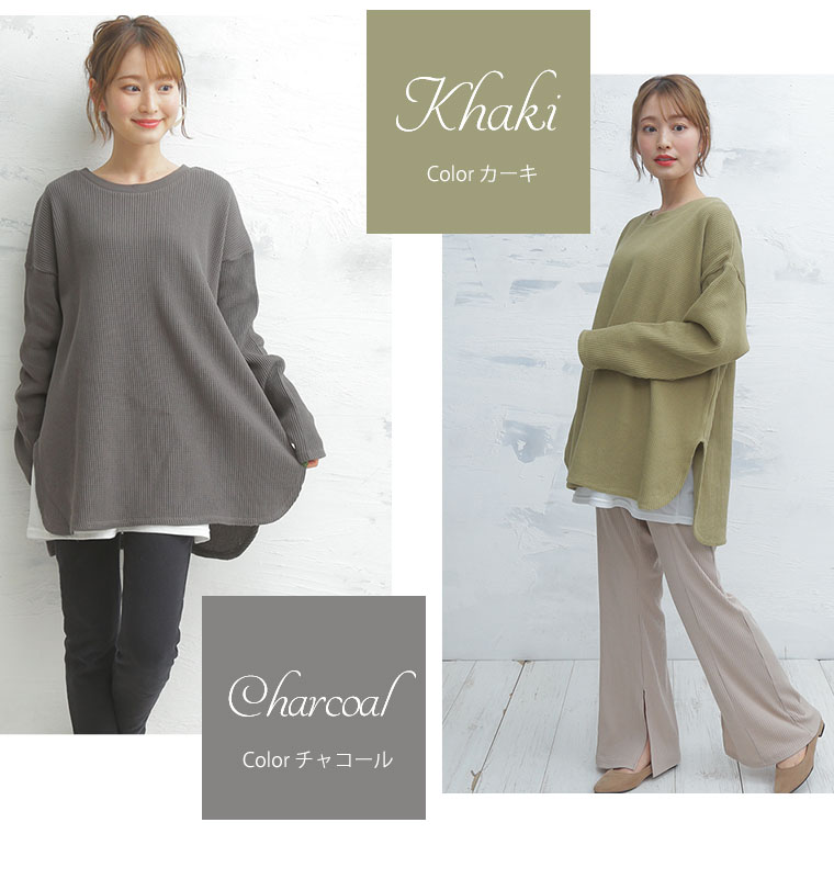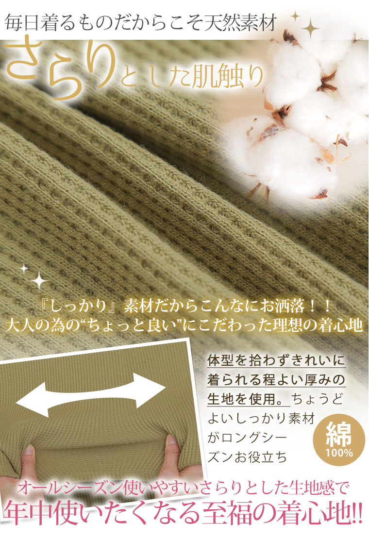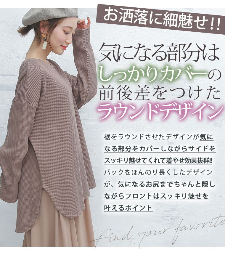 さらりコットン100% ゆるっとお洒落な裾ラウンドが嬉しいワッフルトップス