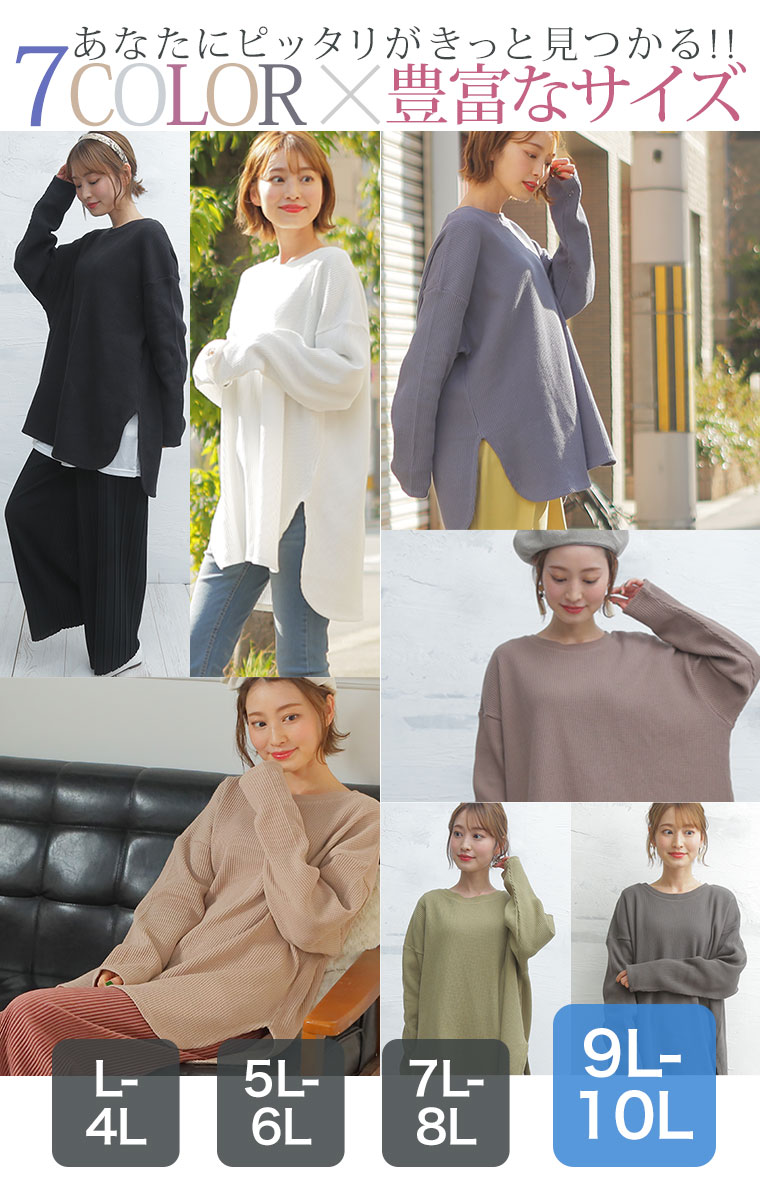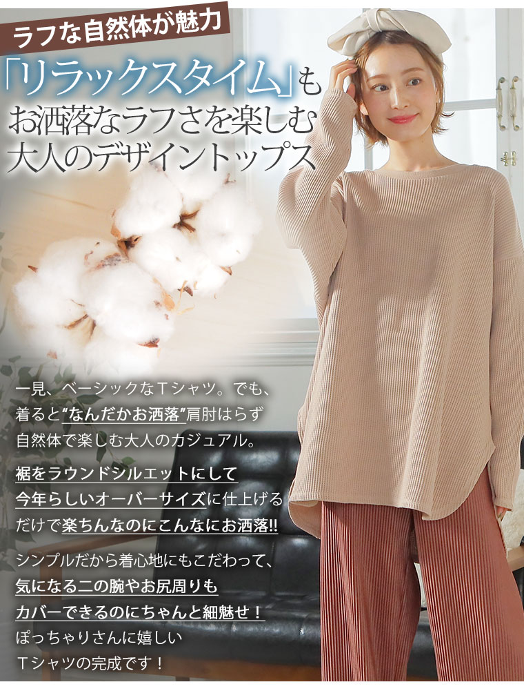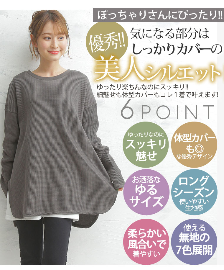 ぽっちゃりさんに嬉しい!ゆったり裾ラウンド細魅せワッフルトップス