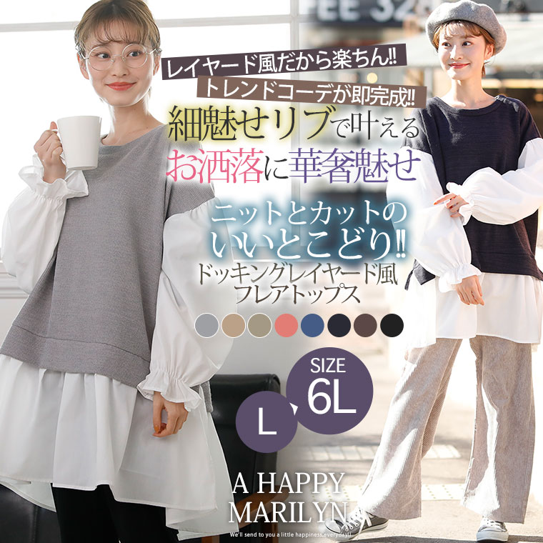 1枚で楽ちんお洒落!美人リブ細魅せドッキングフレアトップス