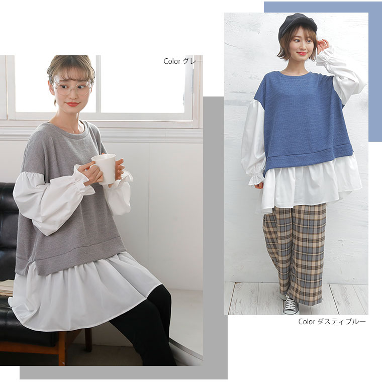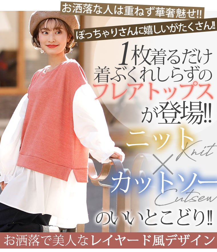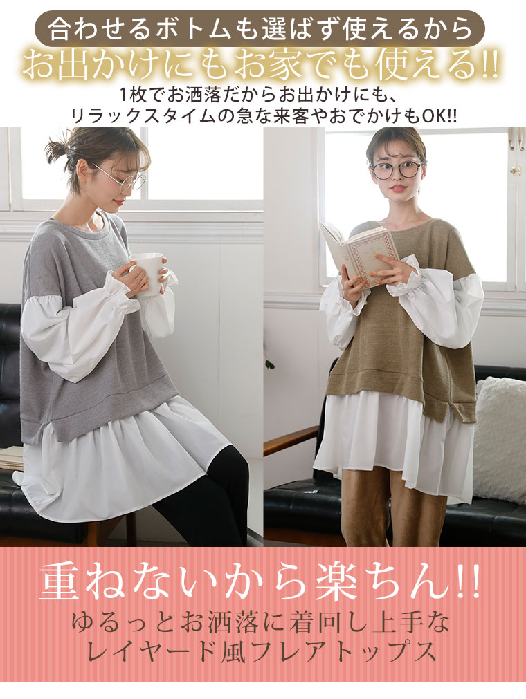着るだけ簡単!着膨れ知らずのレイヤード風フレアトップス