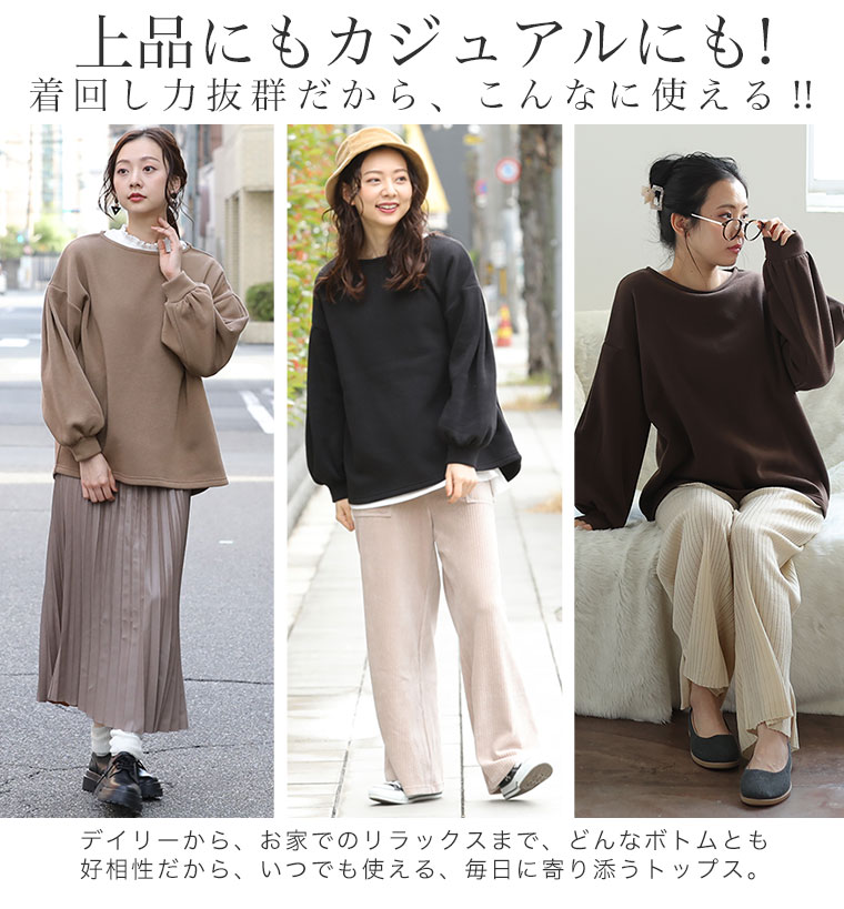 カジュアルにも上品にも着れちゃうHEAT裏起毛 ぽわん袖トップス