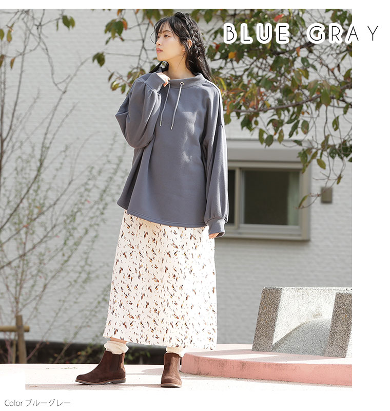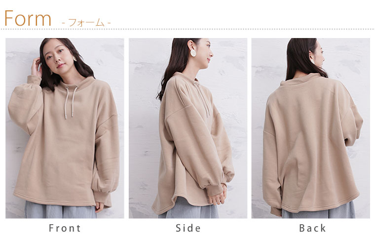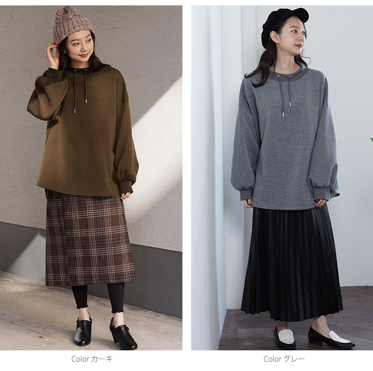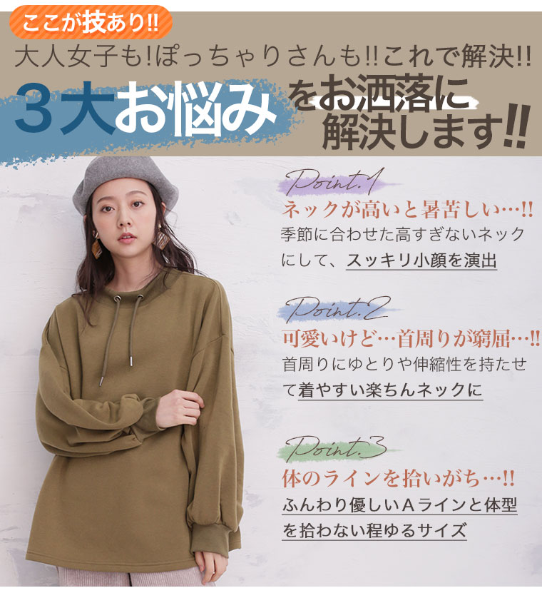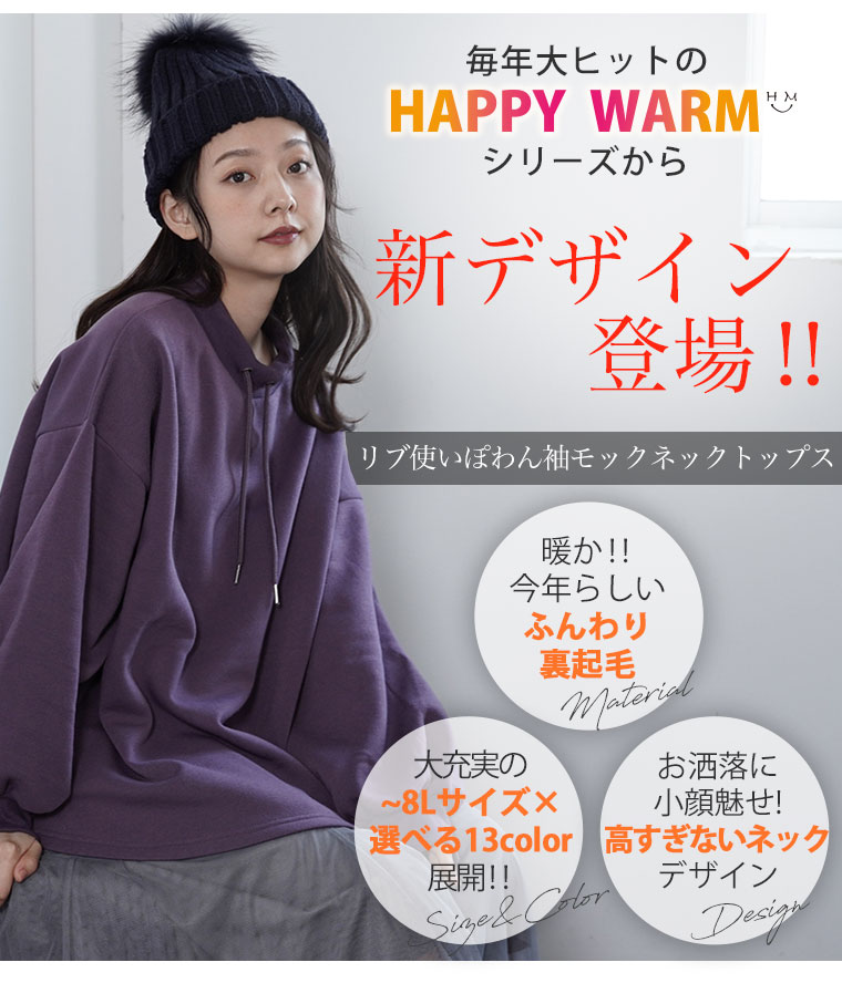 HEAT裏起毛 ゆるっとラフで小顔魅せが叶う リブ使いモックネックぽわん袖トップス