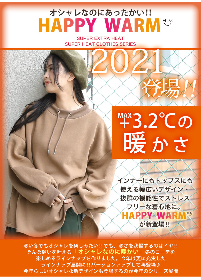 HAPPY WARM お肌に優しい嬉しい7つの機能 発熱 保温・保湿 吸汗速乾!