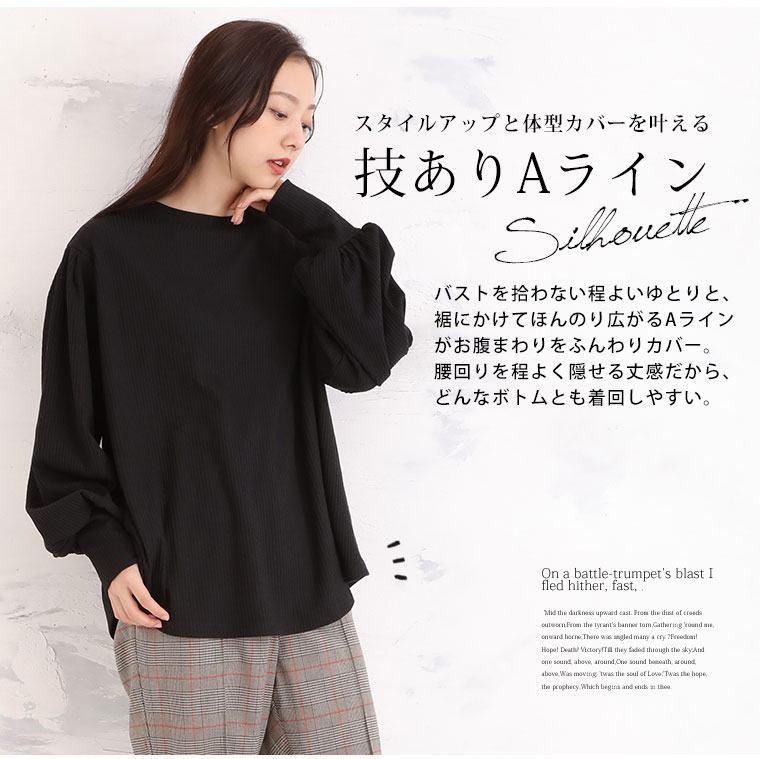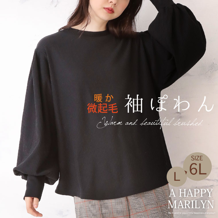 大きいサイズ マリリンオリジナル 着ぶくれ回避の細魅せ美人 起毛リブぽわん袖トップス