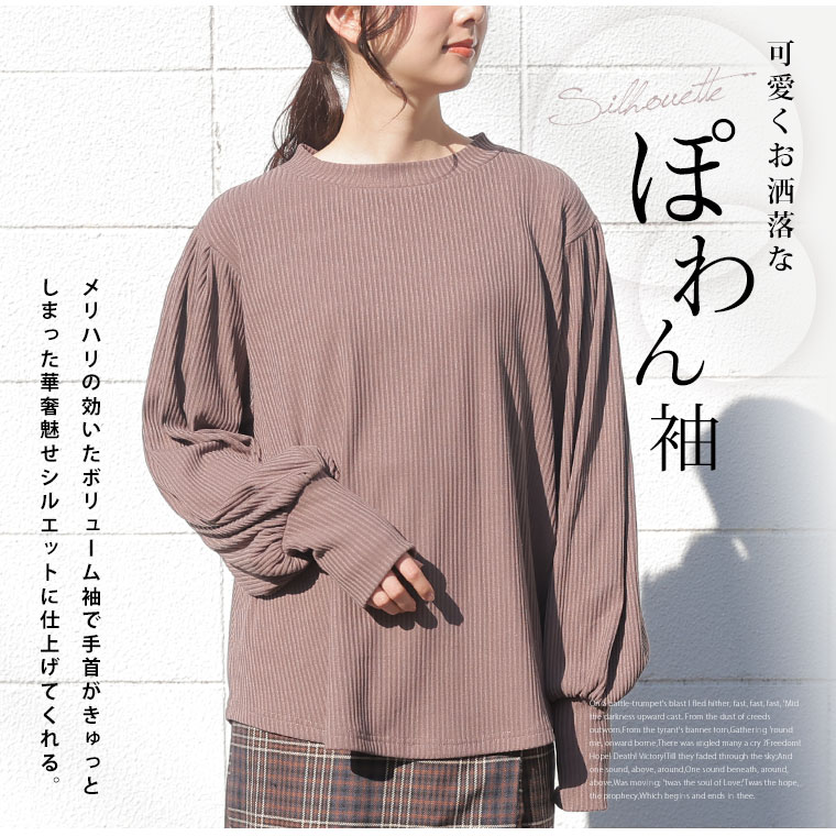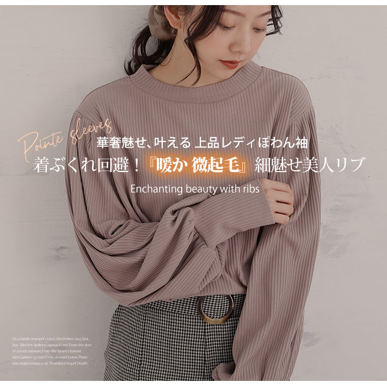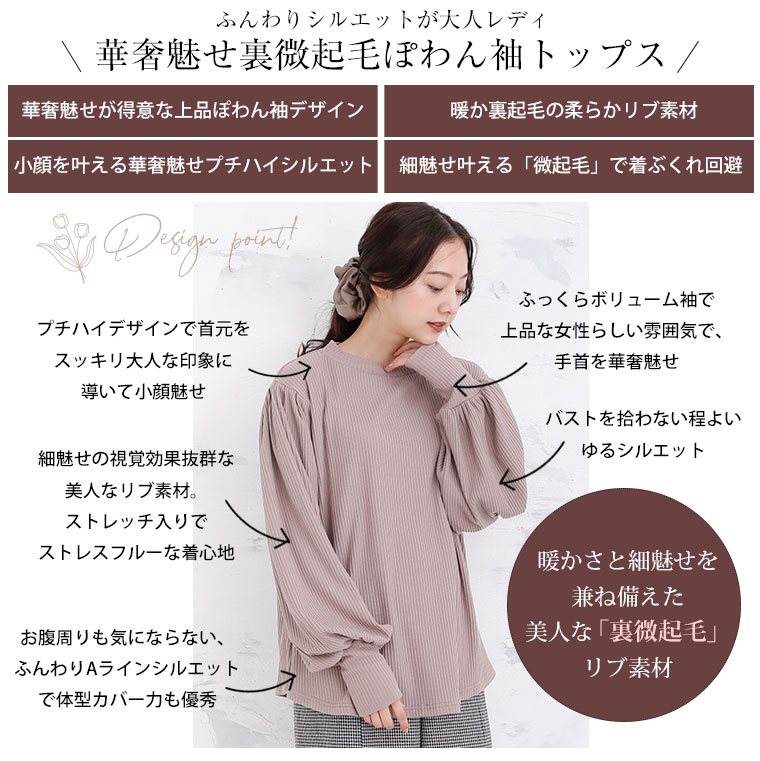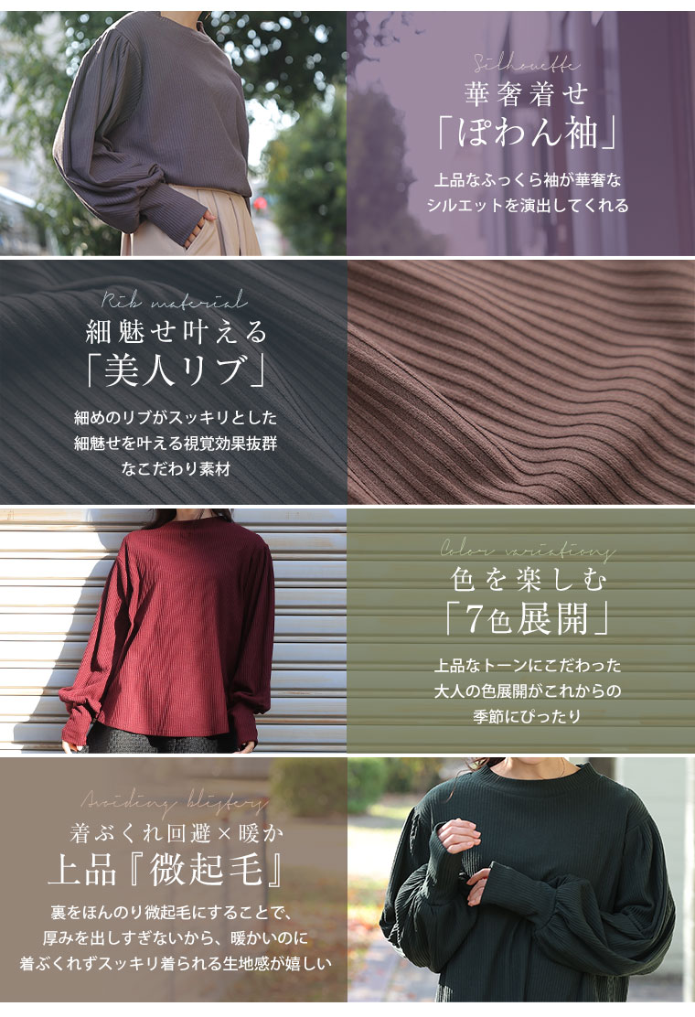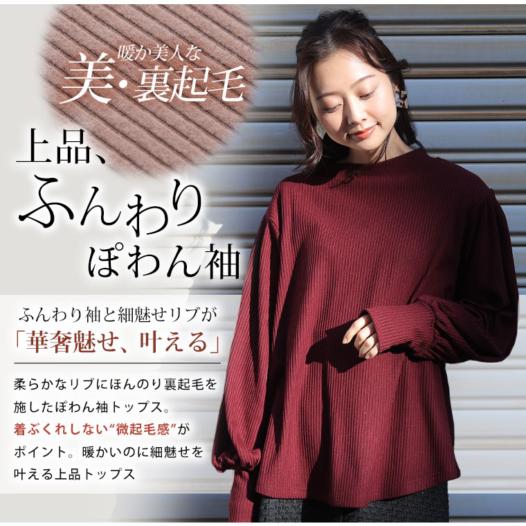 マリリンオリジナル 着ぶくれ回避の細魅せ美人 起毛リブぽわん袖トップス