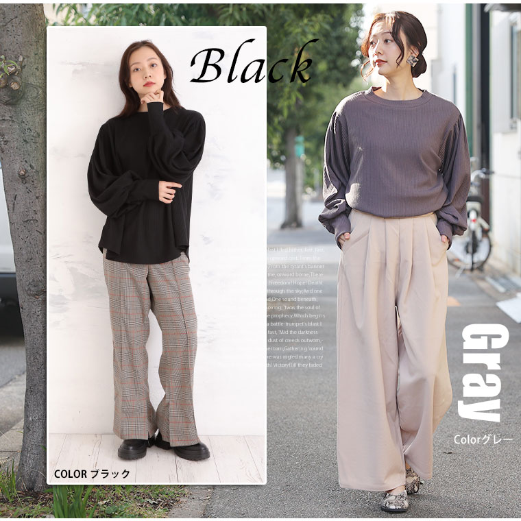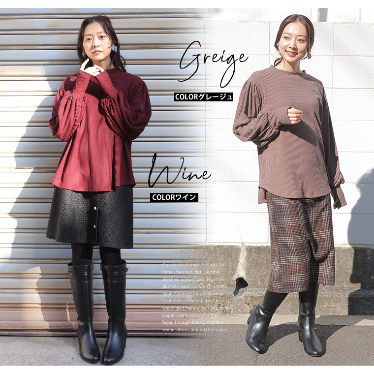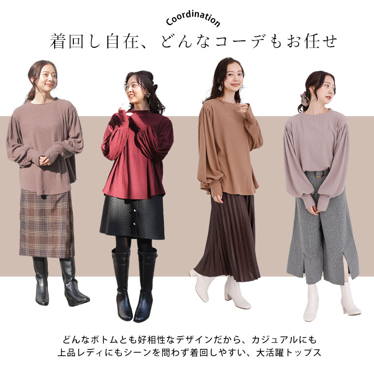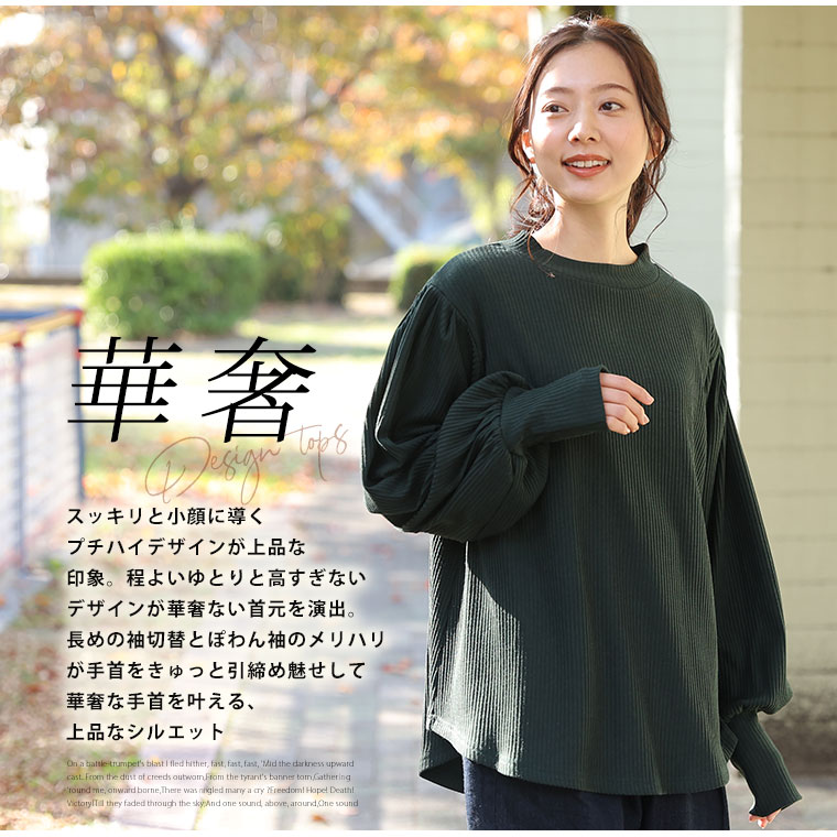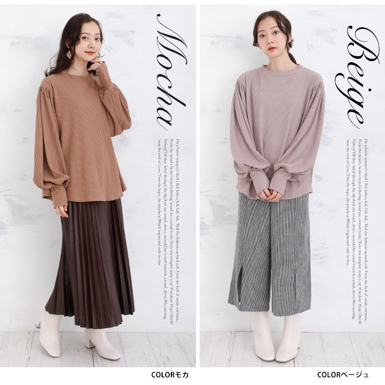 マリリンオリジナル 着ぶくれ回避の細魅せ美人 起毛リブぽわん袖トップス