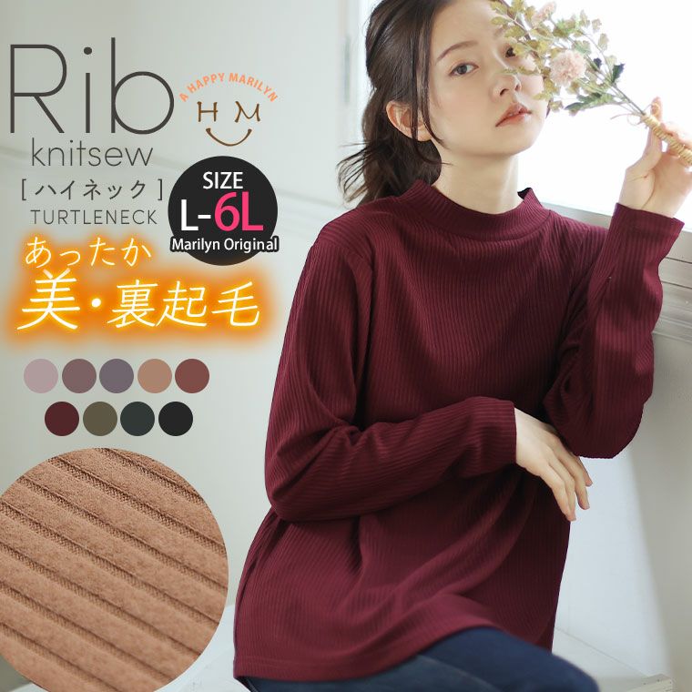 あったか裏起毛 もっちり素材のリブTOPS