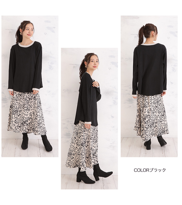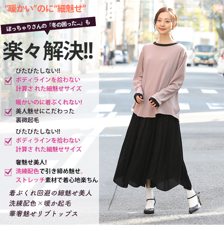 上品なのに今年らしい印象になる配色デザイン。シンプルなのにお洒落と華奢魅せを叶える洗練トップス