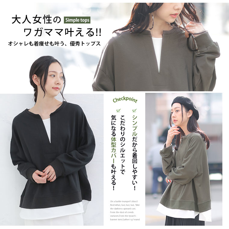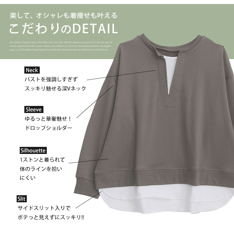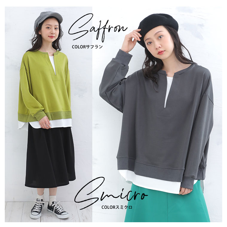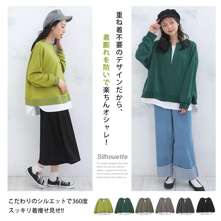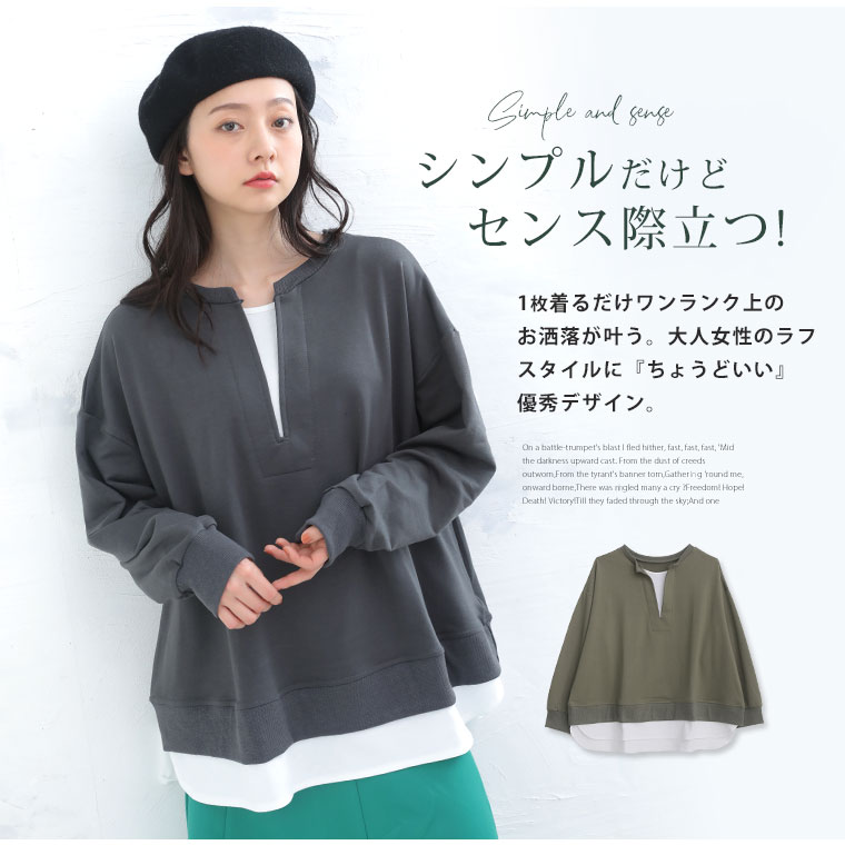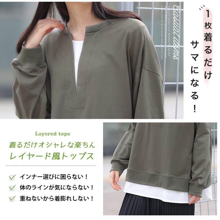 1枚着るだけで楽ちんお洒落なレイヤード風トップス