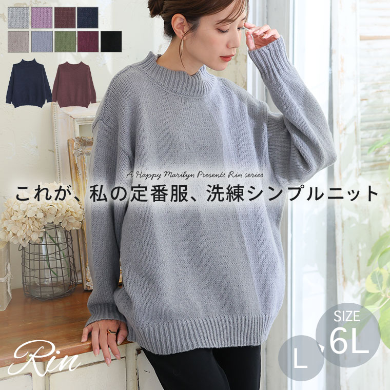 セーター LL 3L 4L 5L 6L 冬 冬物 冬服 ぽっちゃり ゆったり お腹 新色追加!! Rin シンプル美人を追求 素材と着心地にこだわった シンプル 2ネックデザイン 長袖 ニット