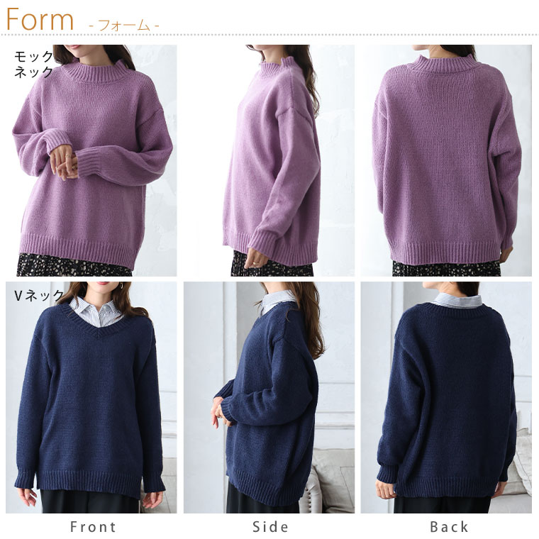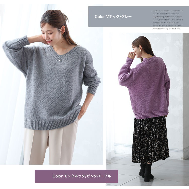 6. 大きいサイズ 新色追加!! Rin シンプル美人を追求 素材と着心地にこだわった シンプル 2ネックデザイン 長袖 ニット