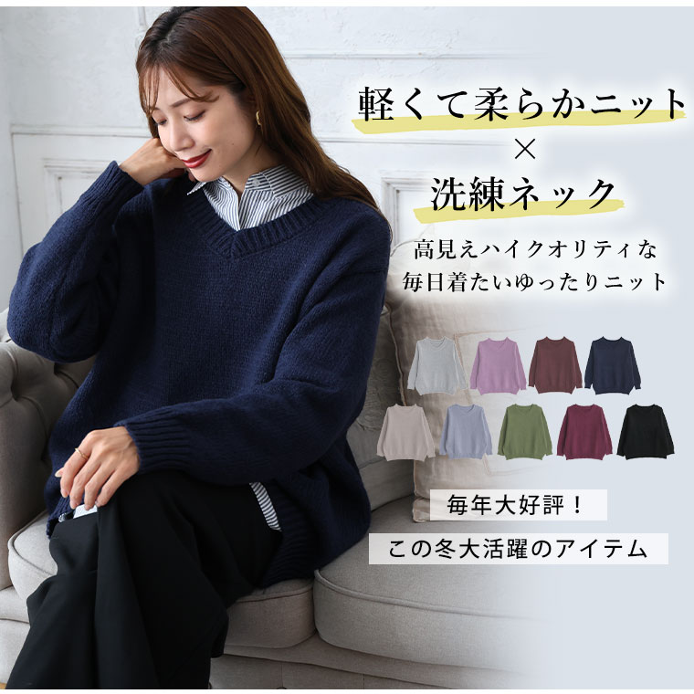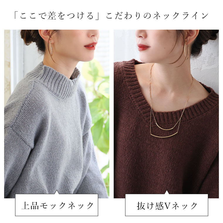 シンプル美人を追求素材と着心地にこだわったシンプル2ネックデザインニット