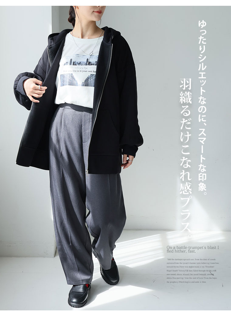 ゆったりシルエットで、重ね着してもごわつかない。羽織るだけこなれ感プラス。