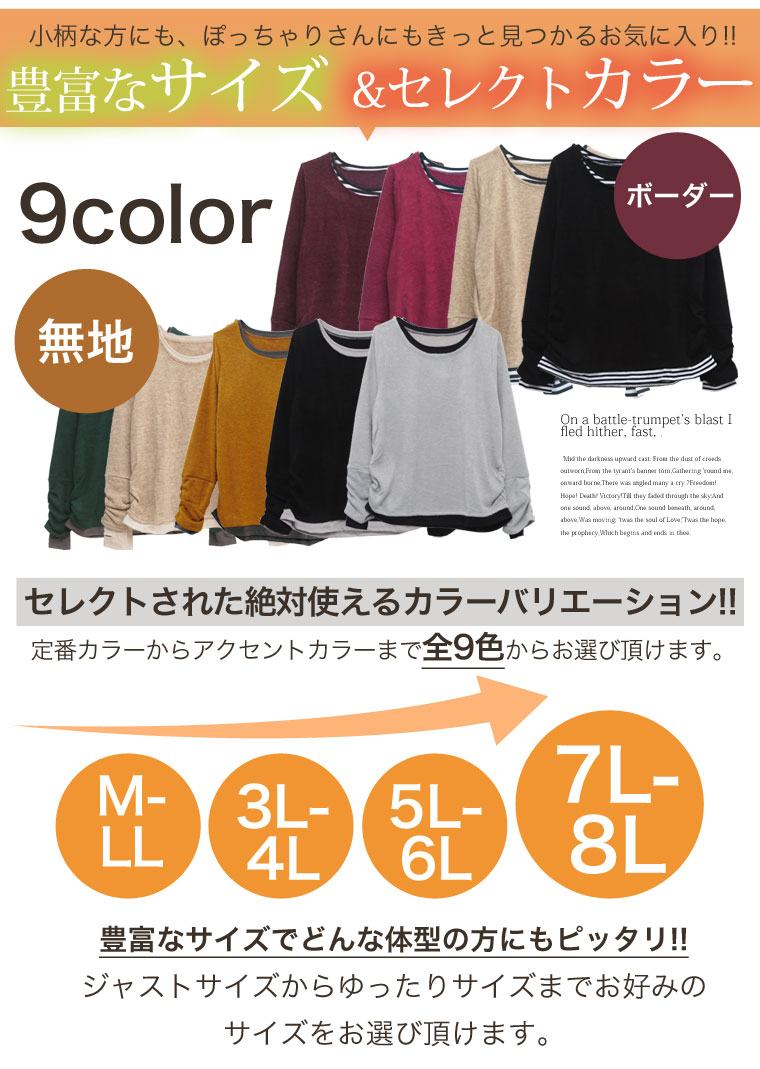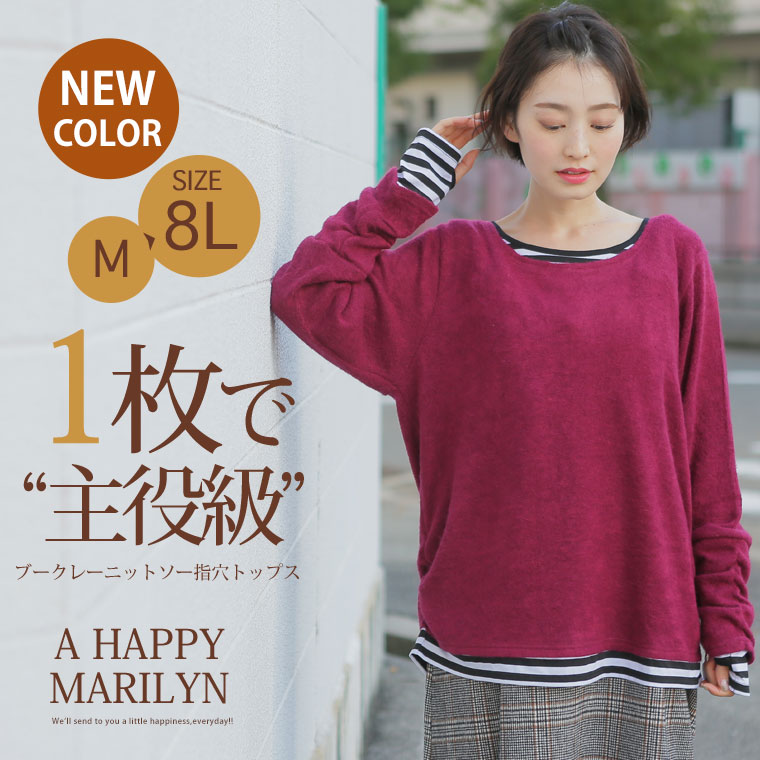 オリジナル トップス プルオーバー LL 3L 4L 5L 6L 7L 8L ぽっちゃり ゆったり かわいい おしゃれ カジュアル ブークレニットソー素材 フェイクレイヤード 指穴付き 長袖 プルオーバー