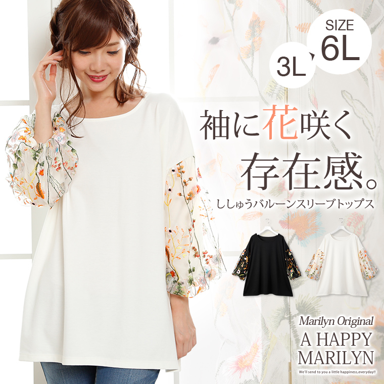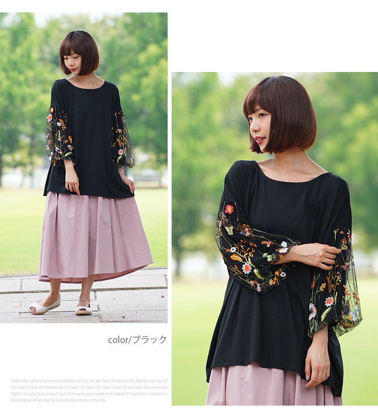チュール素材に咲くカラフルな花柄が可愛い♪バルーンスリーブポンチトップス