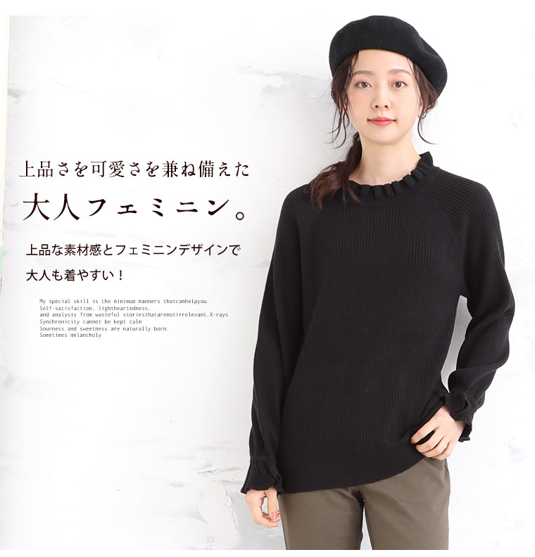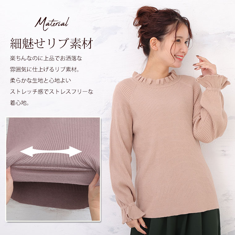 上品な素材感とフェミニン素材で大人も着やすいリブカットソー
