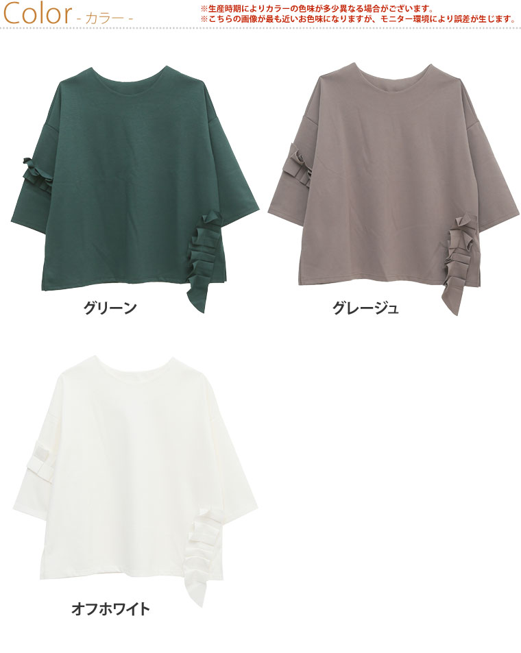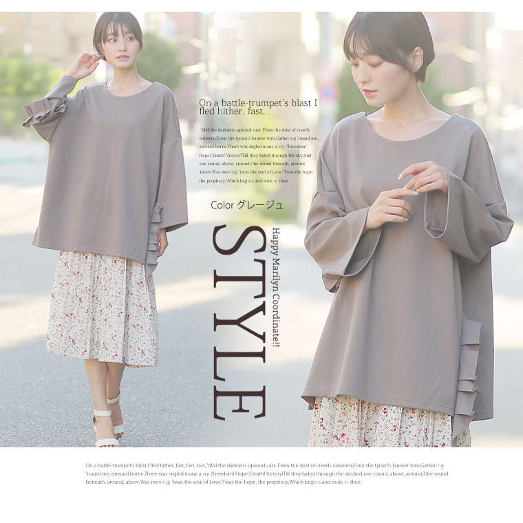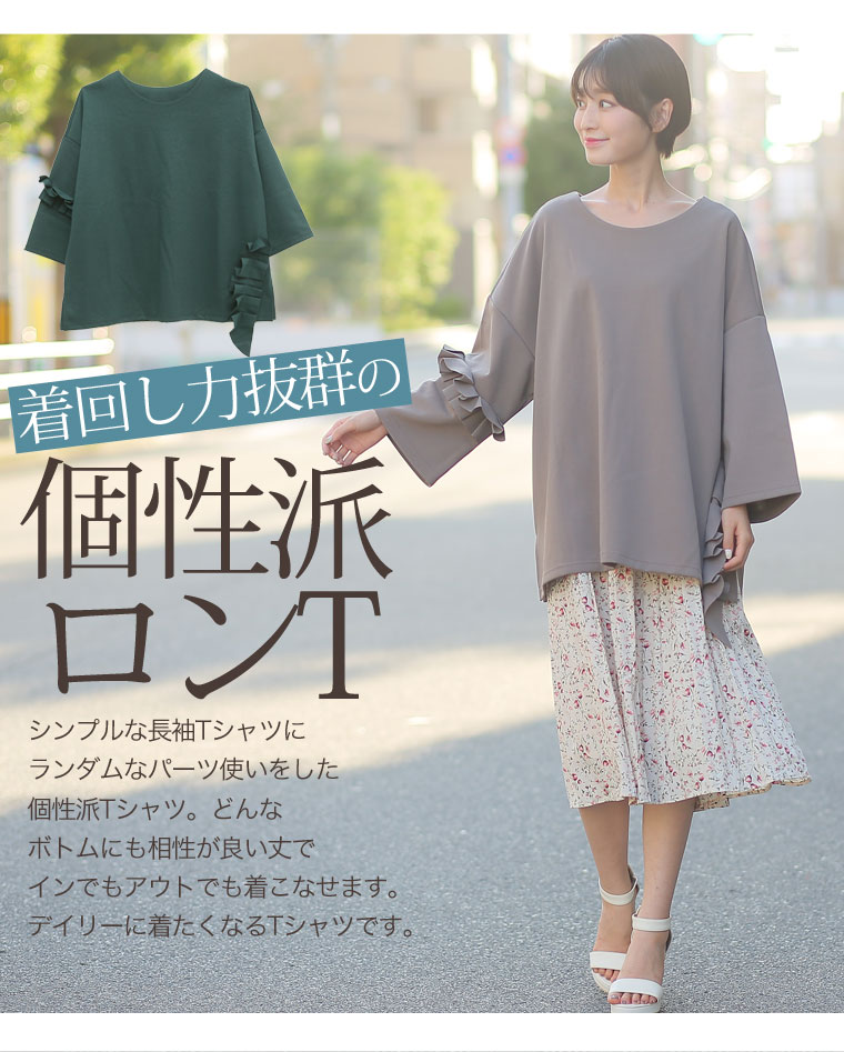 シンプルなデザインに女性らしいフリルをプラス。体型カバーも叶う1枚です