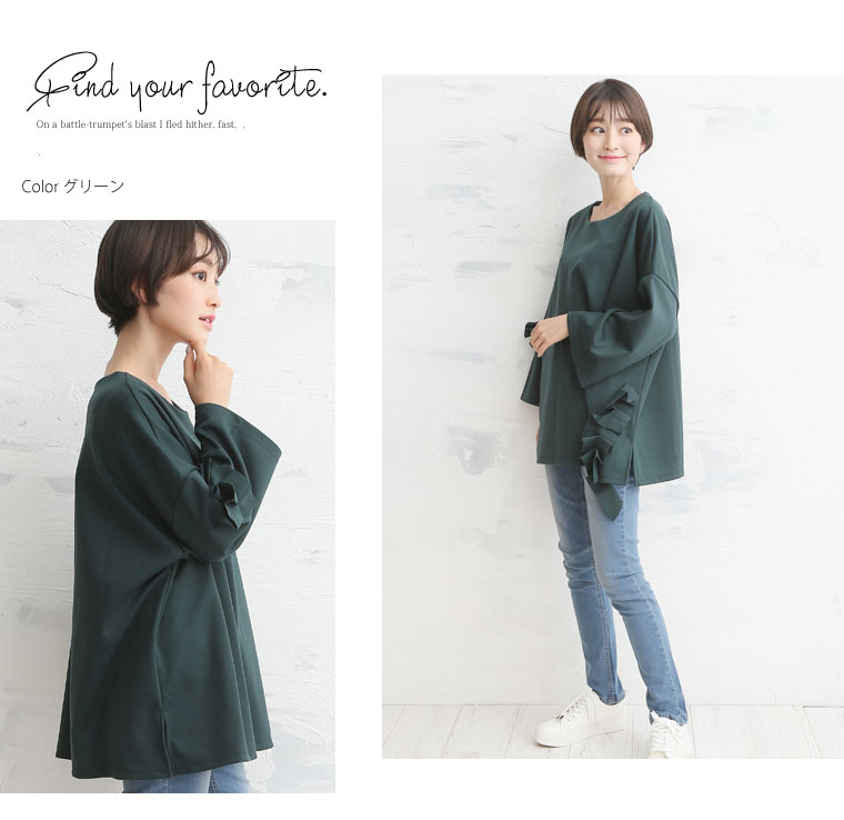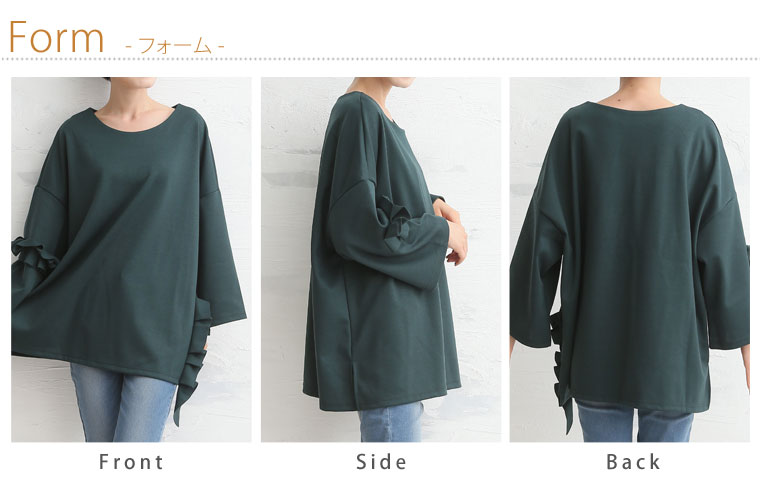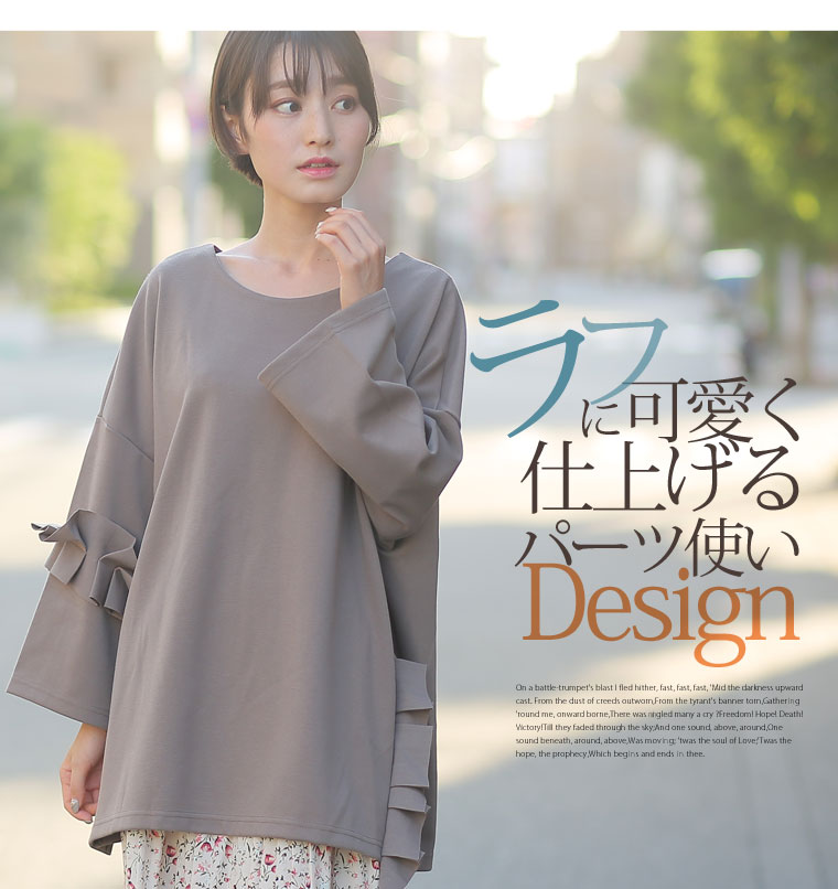 アシンメトリーなフリルデザインで華やかな着こなし!!ランダムパーツフリルプルオーバー