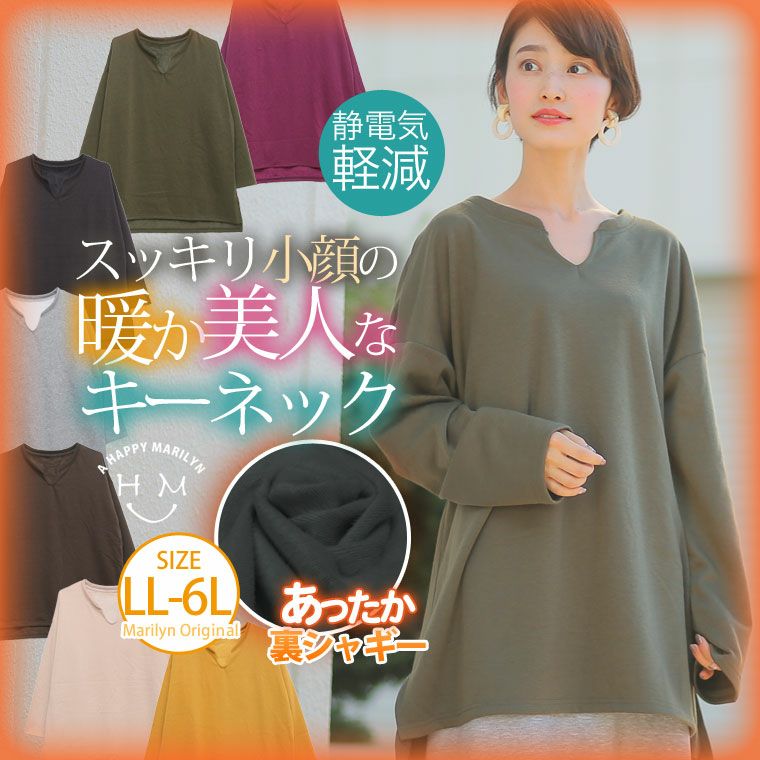 裏シャギーであったかストレスフリー◎キーネックドルマンプルオーバー