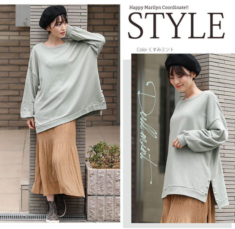 秋冬から春まで着られる!大人のほの甘がかわいいサイドパールスウェット