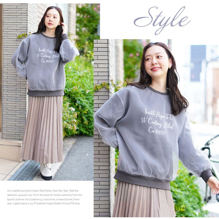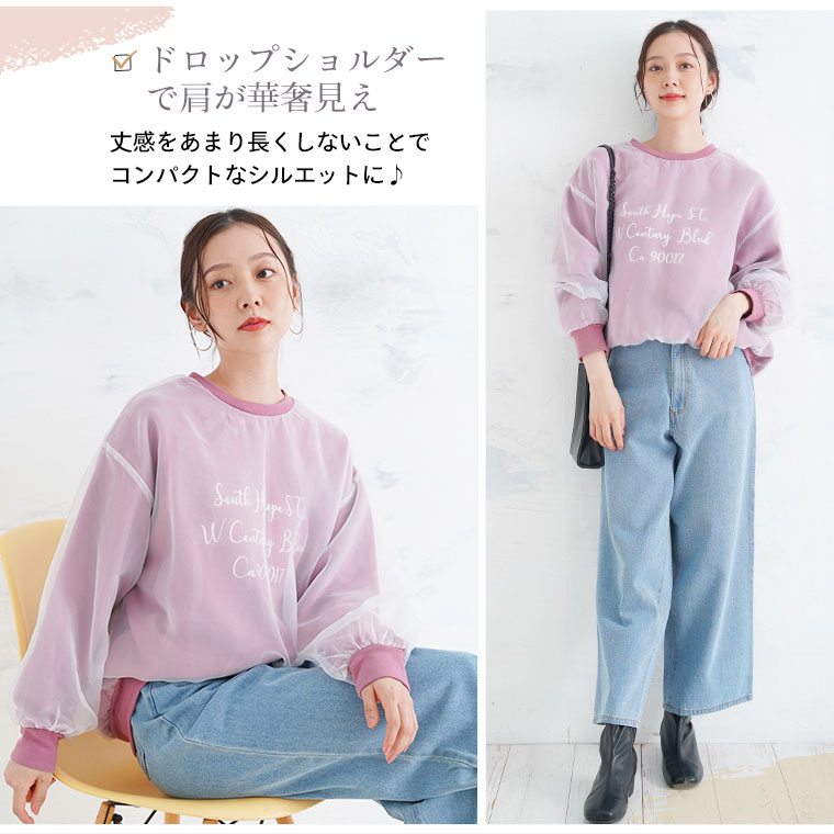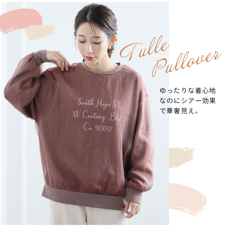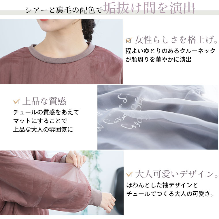 シアー効果で華奢見え。ゆる華奢チュール重ねプルオーバー