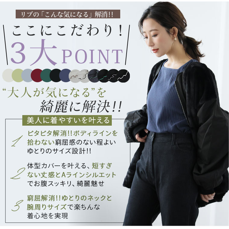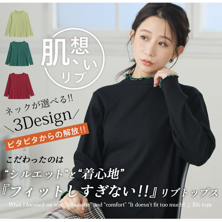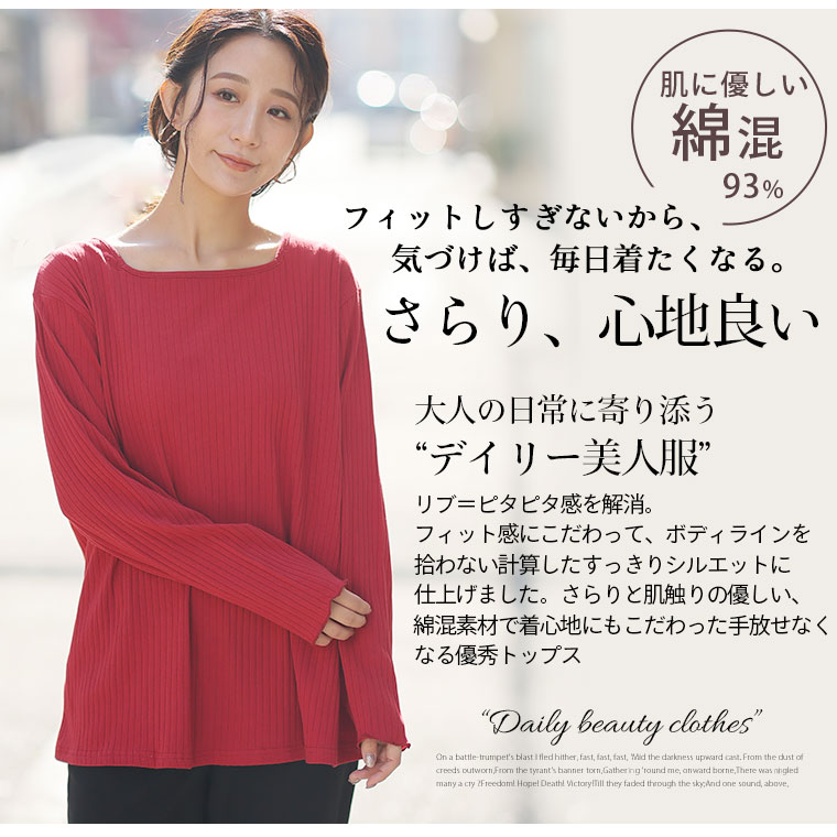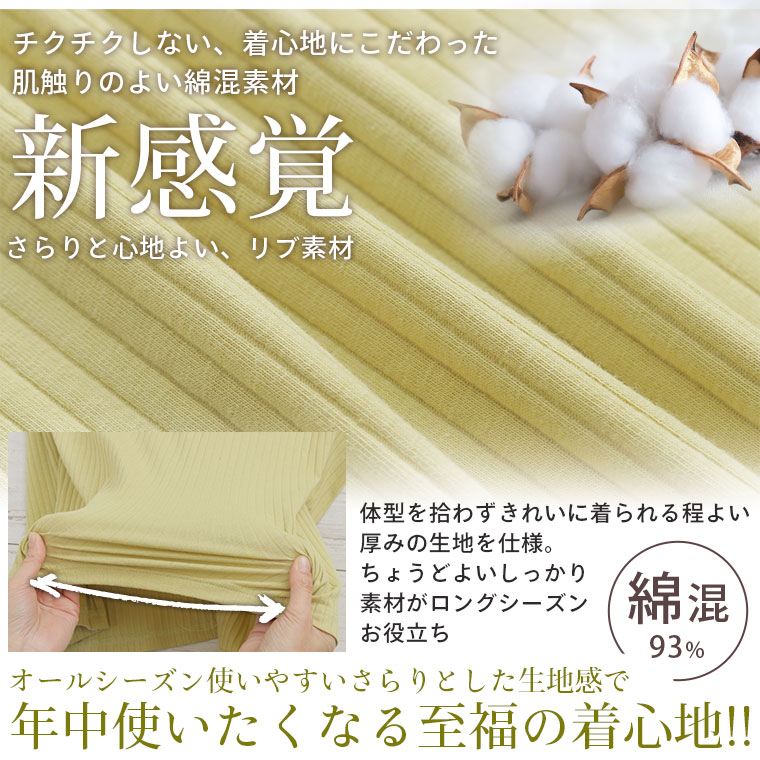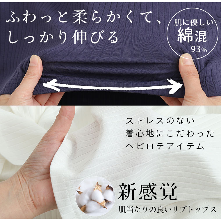 フィットしすぎない、心地良さ 柔らかく、窮屈感なし!チクチクしない、選べる綿混リブトップス