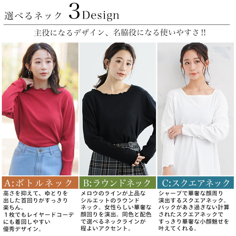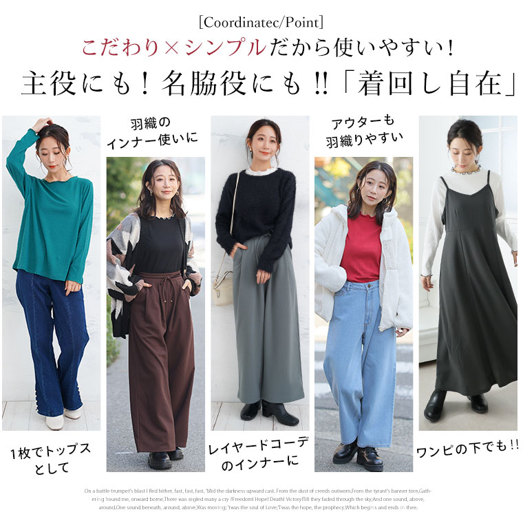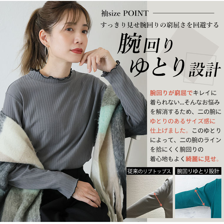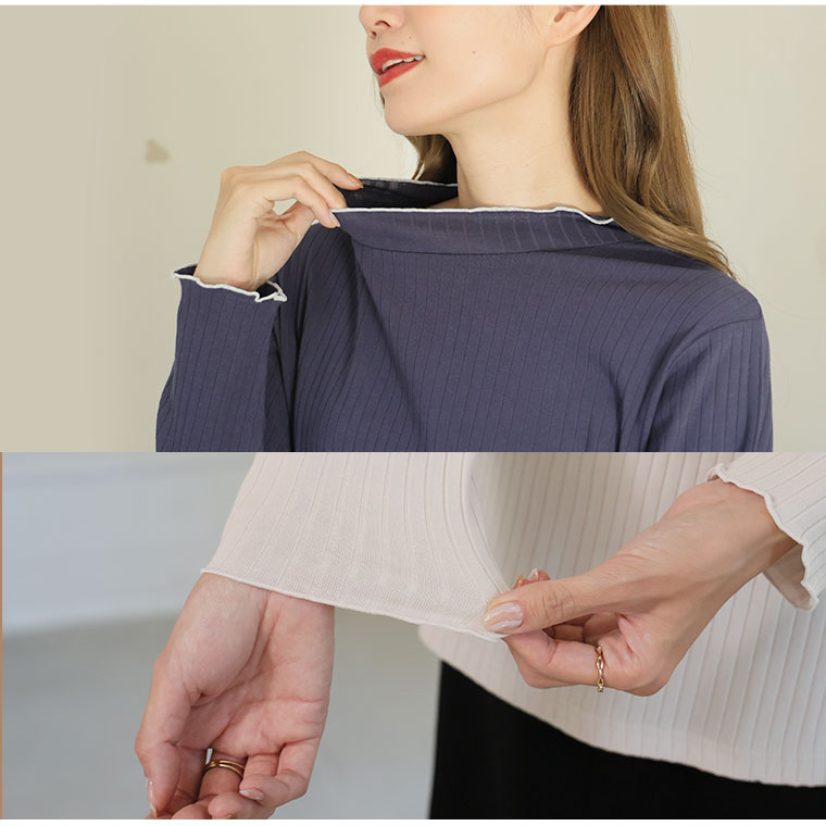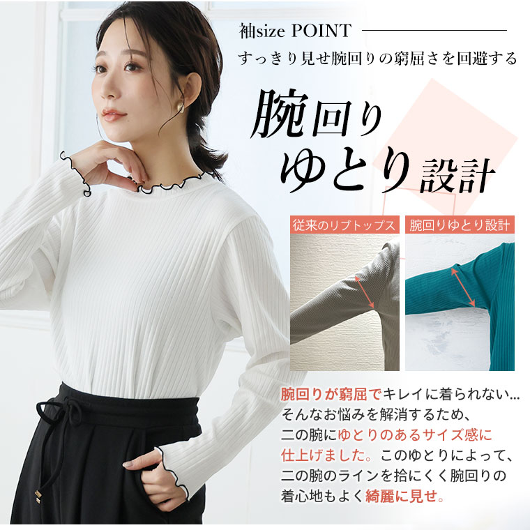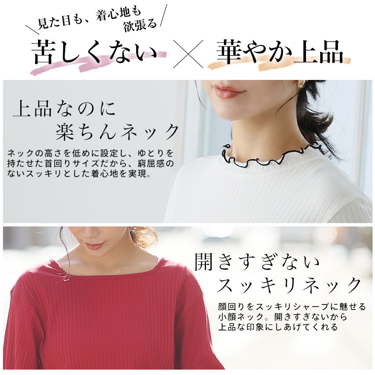 フィットしすぎない、心地良さ 柔らかく、窮屈感なし!チクチクしない、選べる綿混リブトップス