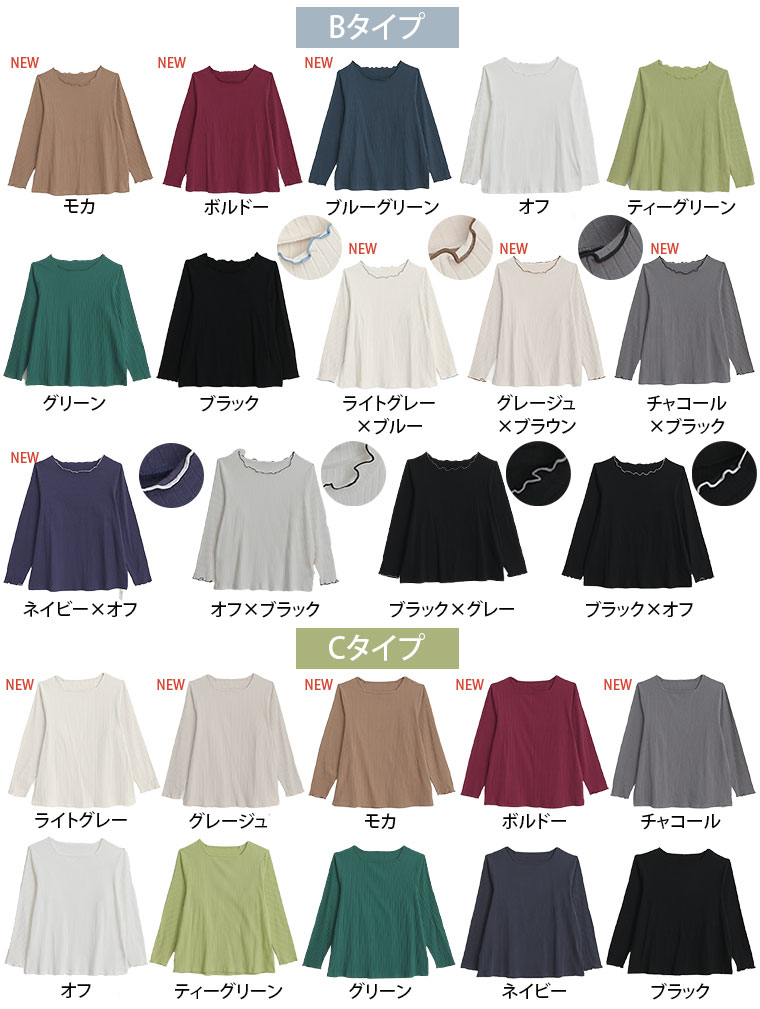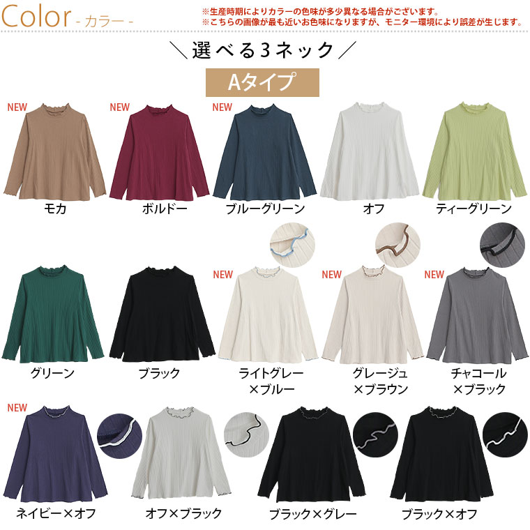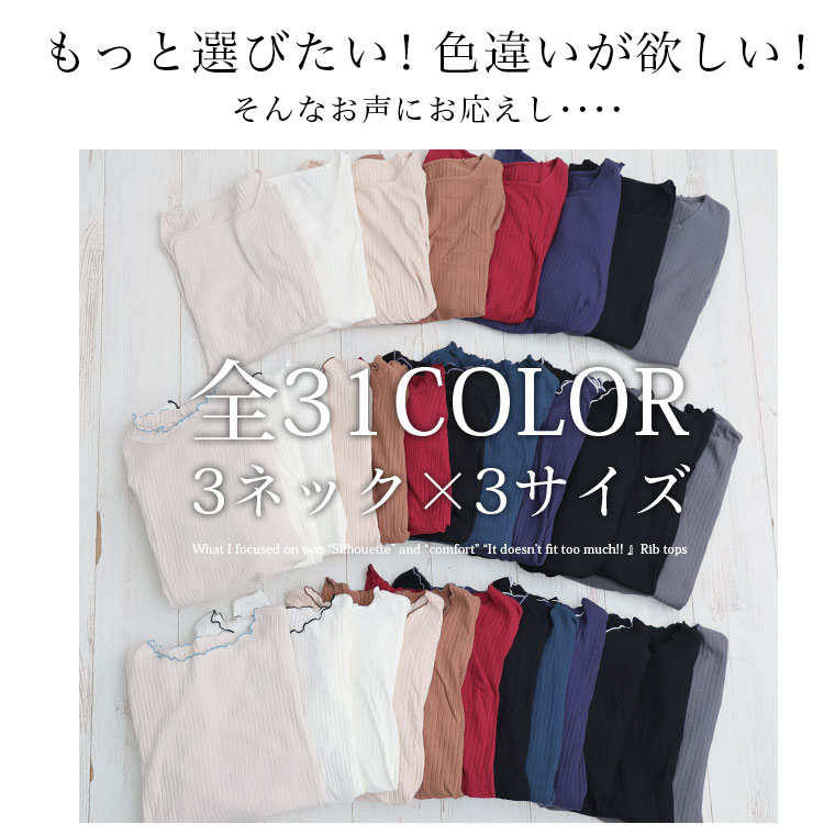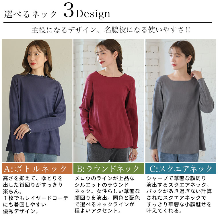 3. 大きいサイズ 新色追加!! ピタピタからの解放 選べるネック 綿混 メロウ リブ トップス