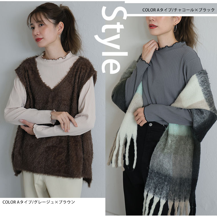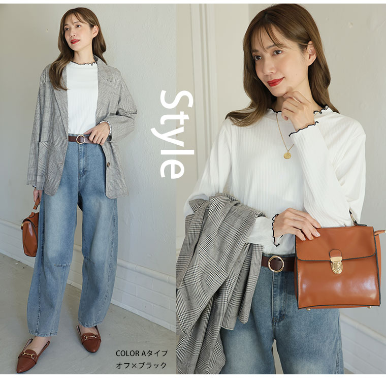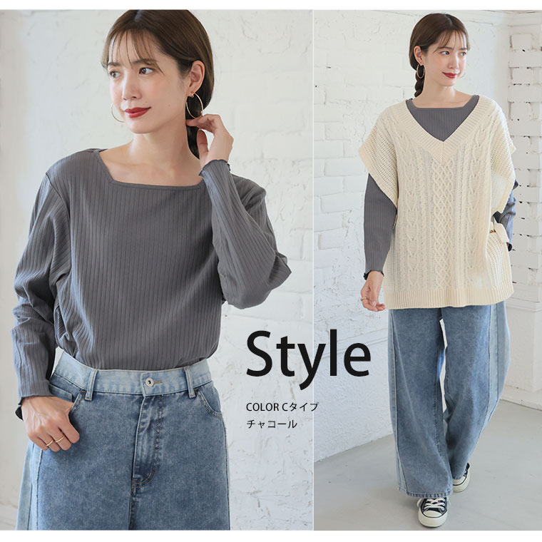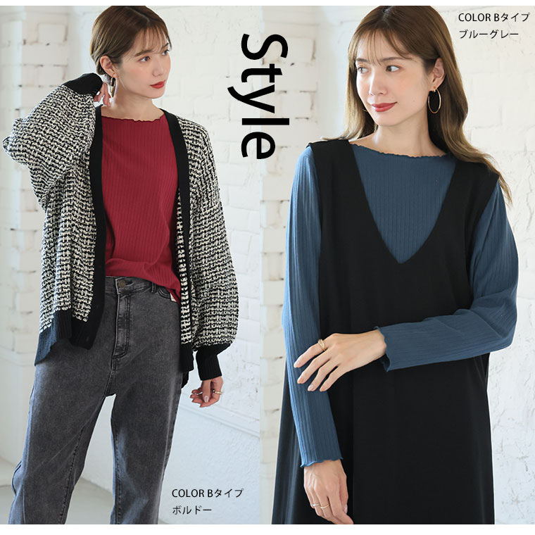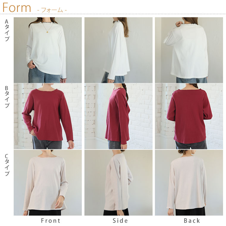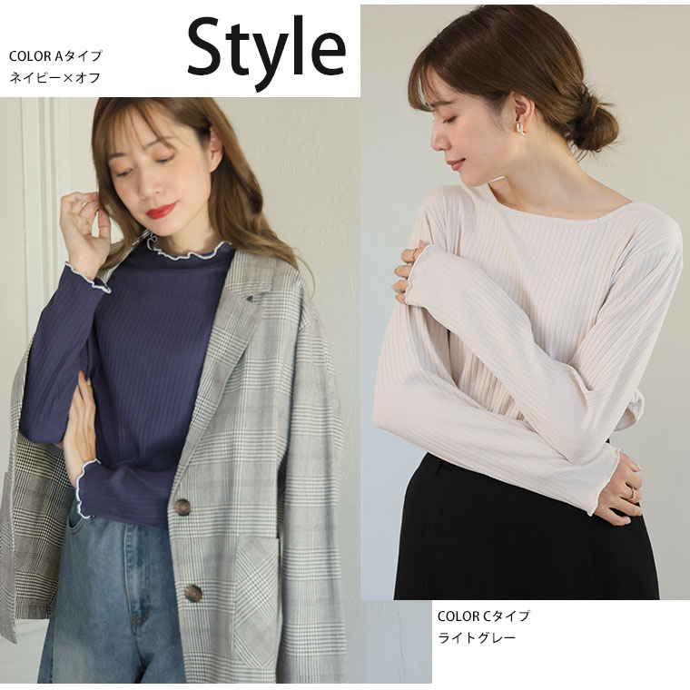 4. 大きいサイズ 新色追加!! ピタピタからの解放 選べるネック 綿混 メロウ リブ トップス