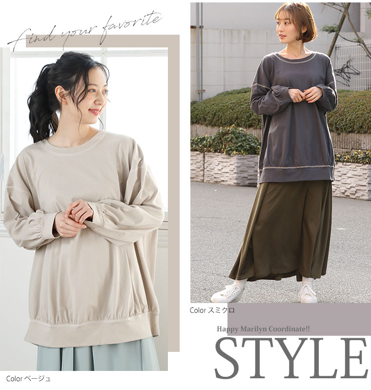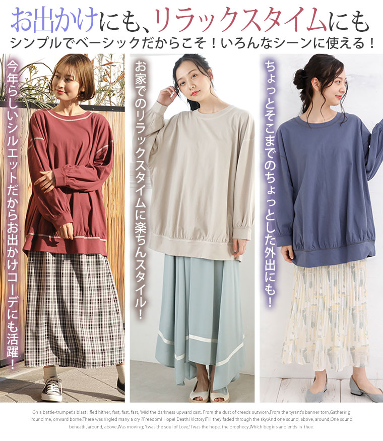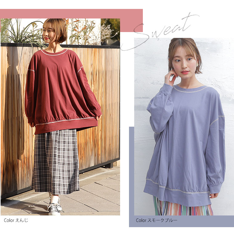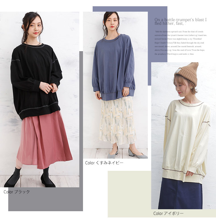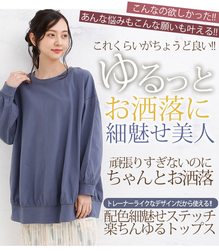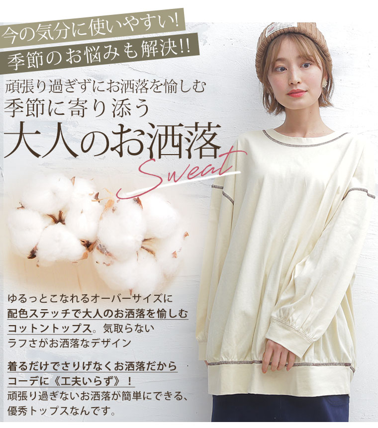 綿100% しっかりコットン配色ステッチ楽ちんゆるトップス