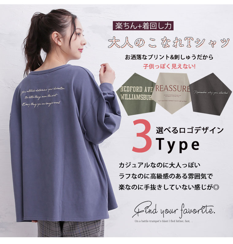 3タイプ×2カラーから選べる!起毛綿細魅せゆるロングTシャツ