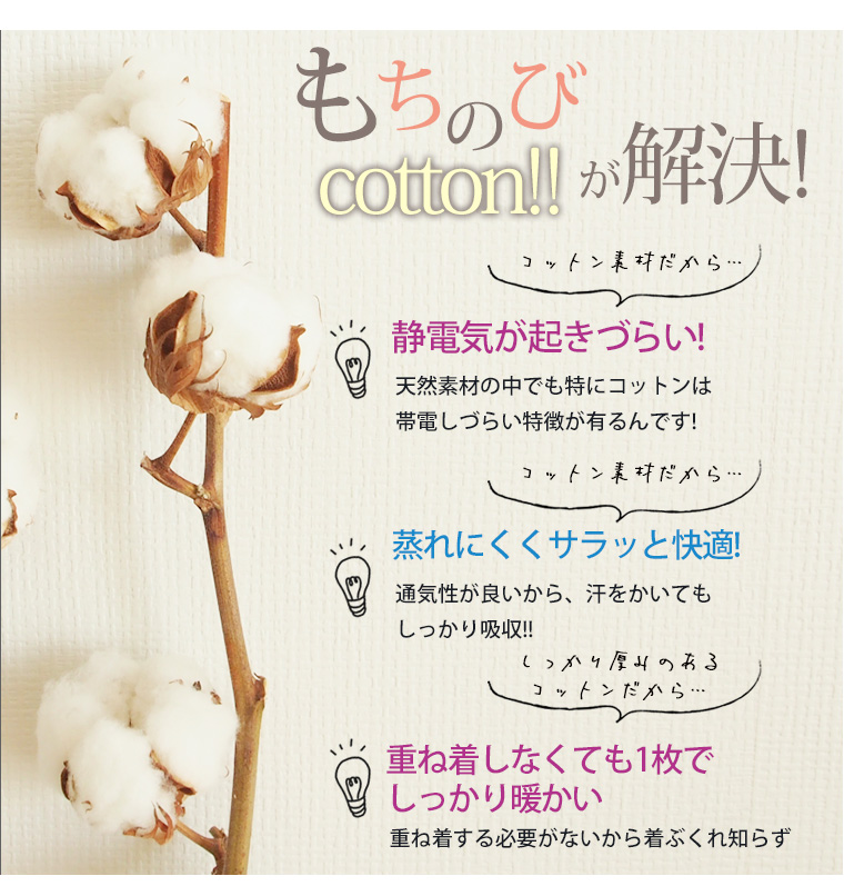 驚きの弾力性と至福の肌心地。もちのびコットン!