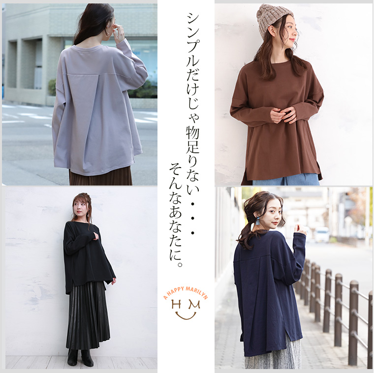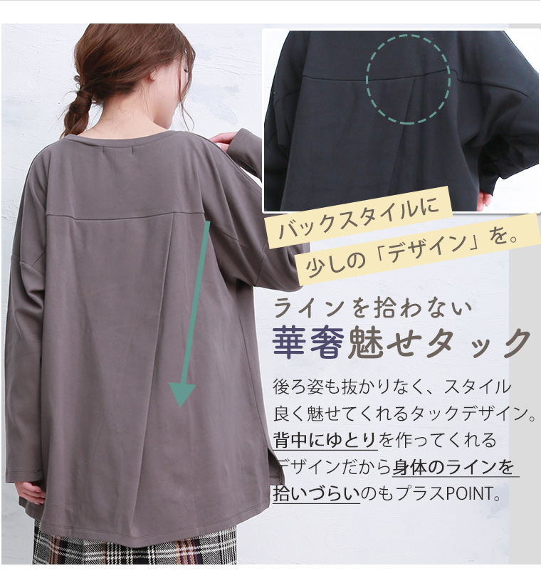 シンプルすぎないほんの少しのデザイン性!バックのタックがポイントのシンプルカットソー