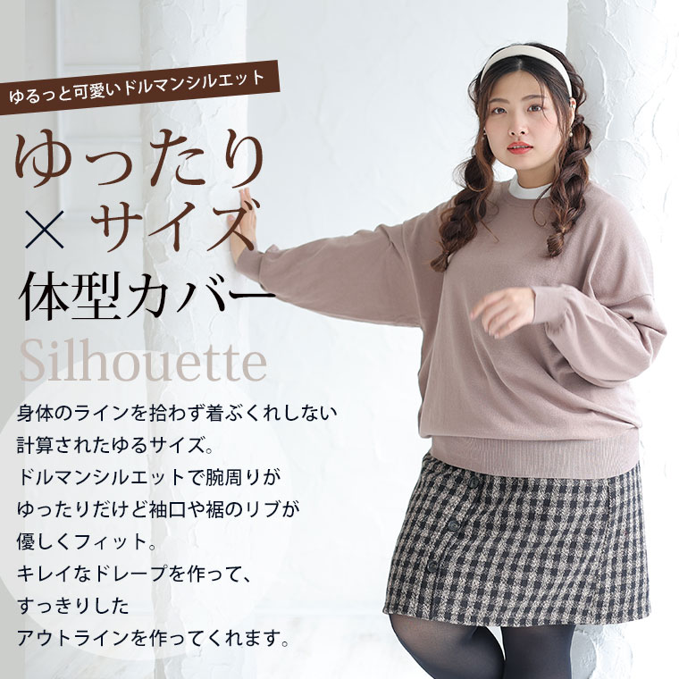 身体のラインを拾わず着膨れしない計算されたゆるサイズ。ドルマンシルエットで腕周りがゆったりだけど袖口や裾のリブが優しくフィット