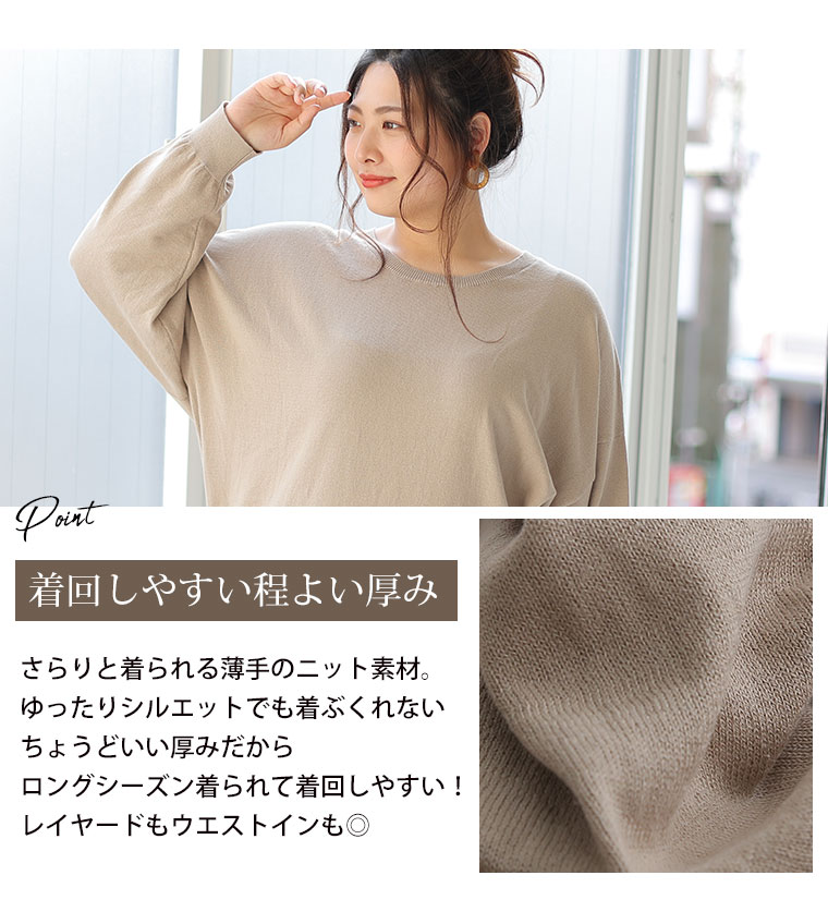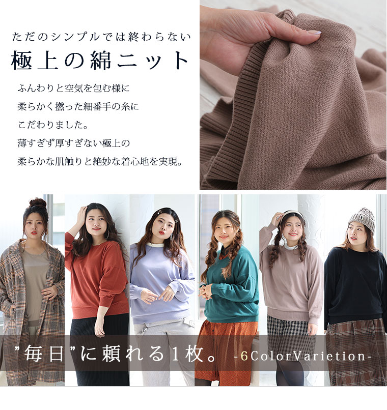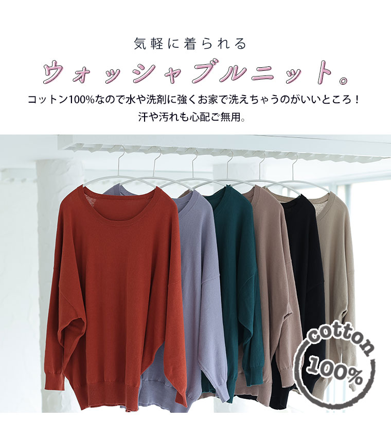 年中使える綿100%ニット。ずっと着られて一番頼れるシンプルドルマントップス