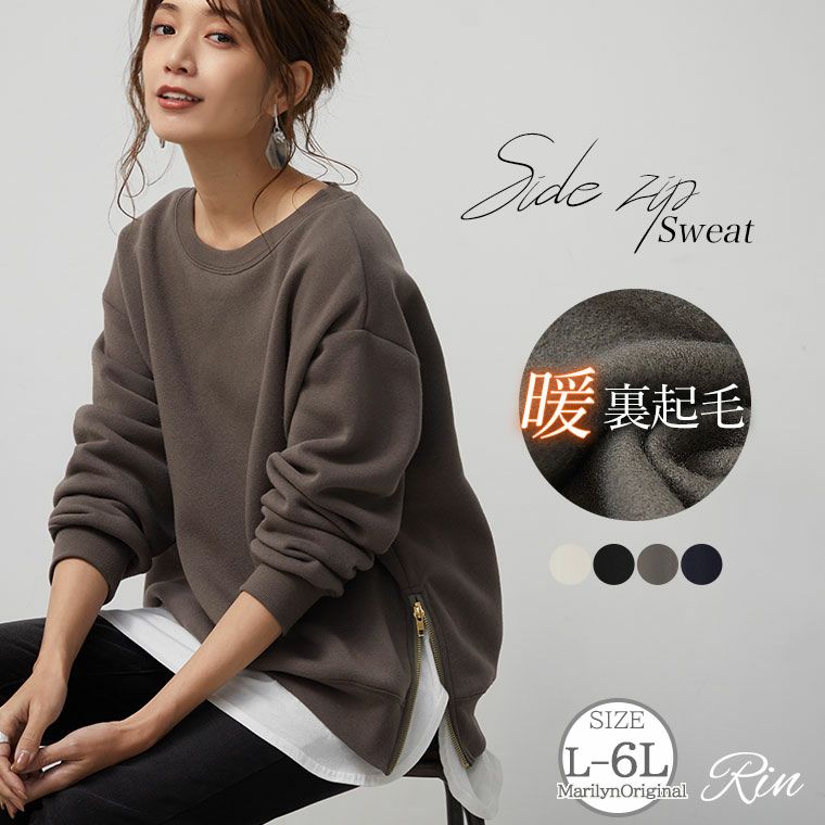 あったかやわらか裏起毛サイドジップスウェット