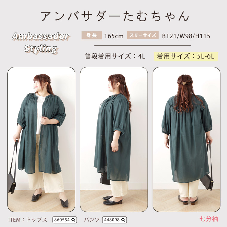 6. 大きいサイズ 新色追加!! 【風通るプレミアム】 七分袖/長袖が選べる 綿 楊柳 シャツチュニック