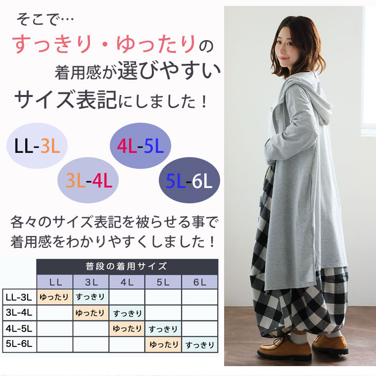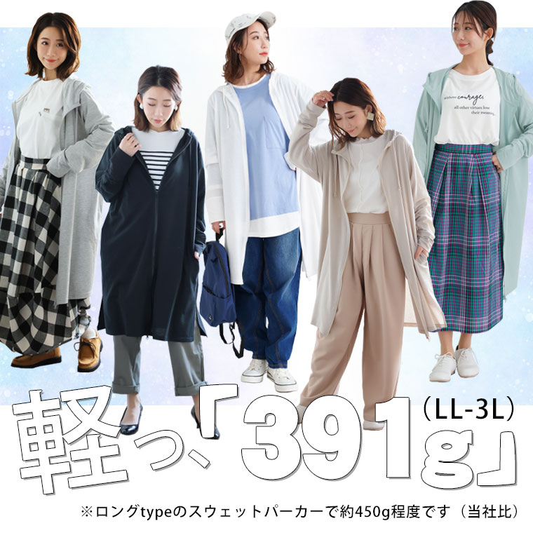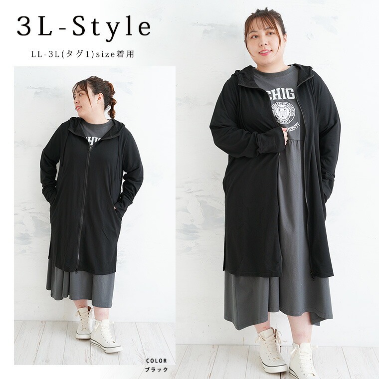 オリジナル パーカー 羽織り LL 3L 4L 5L 6L 春 春物 春服 夏 夏物 夏服 ぽっちゃり ゆったり フード カジュアル ナチュラル プラスサイズ ゆったり着る?スッキリ着る? 着用感の好みが選べる ロングジップパーカー