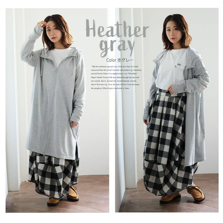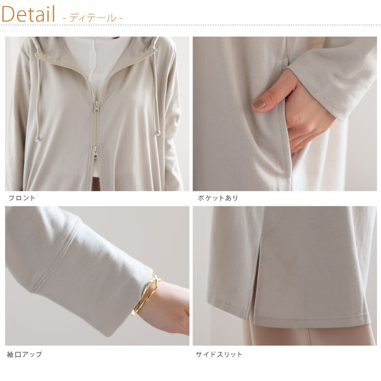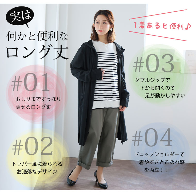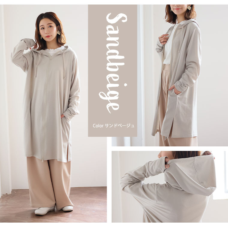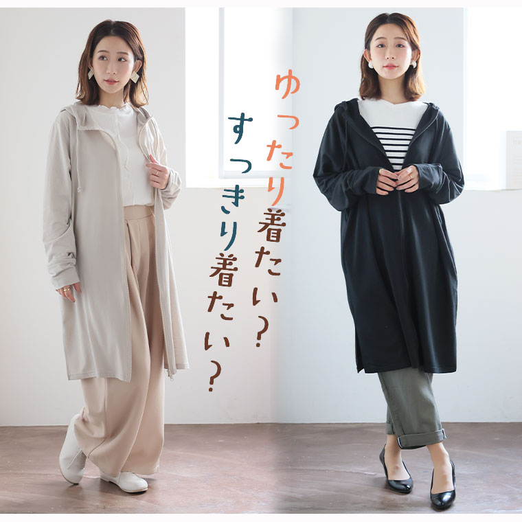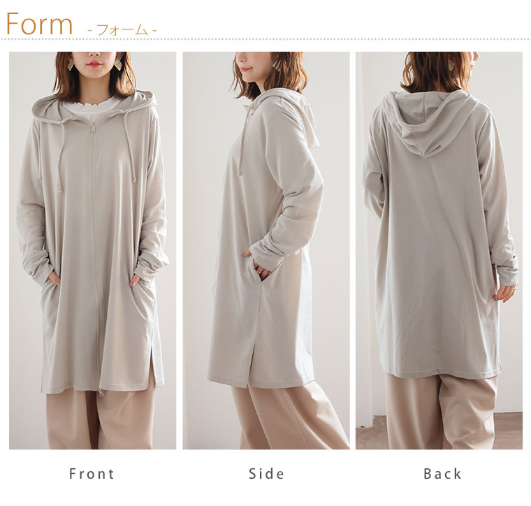 すっきり・ゆったりの着用感が選びやすいシンプルロング丈パーカー