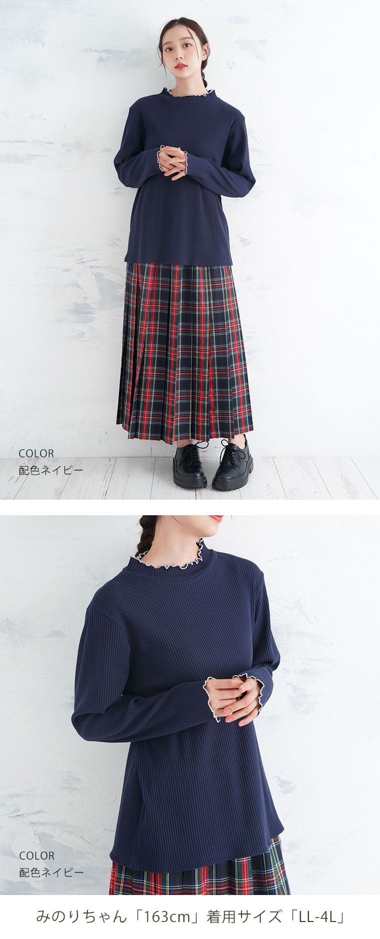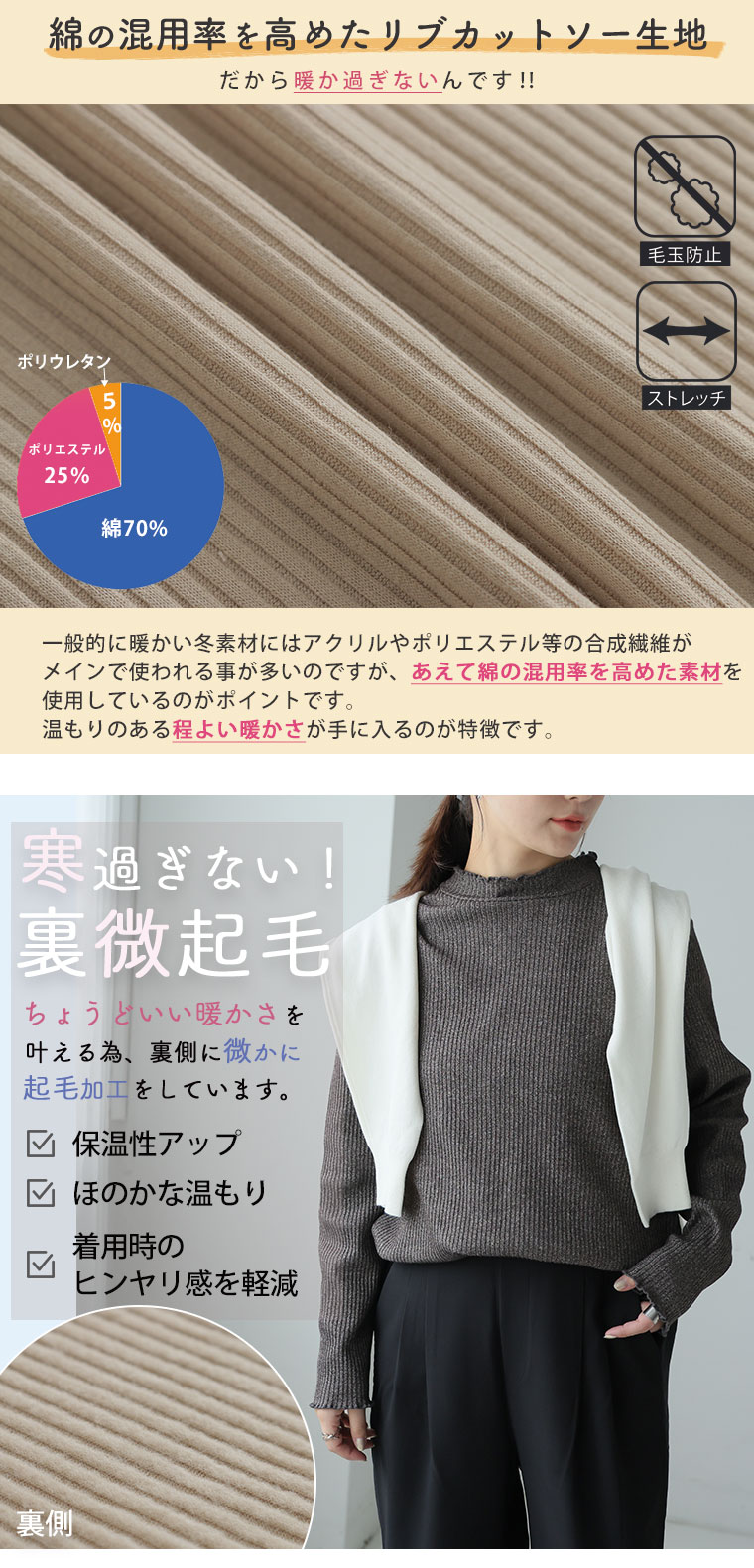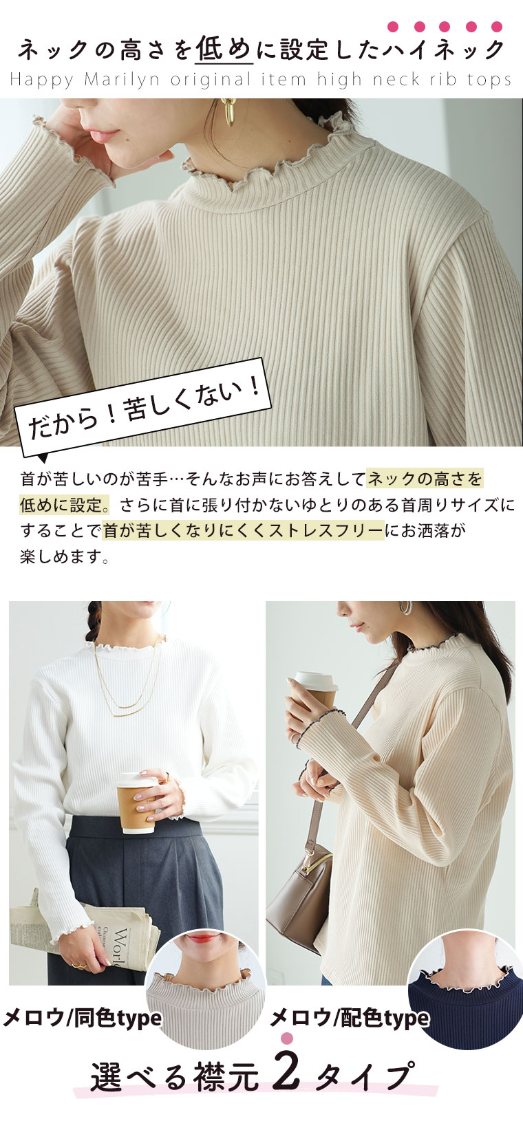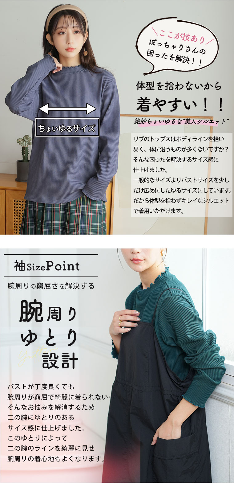 4. 大きいサイズ 新色追加!! 【ちょい温シリーズ】 メロウ ハイネック リブ トップス