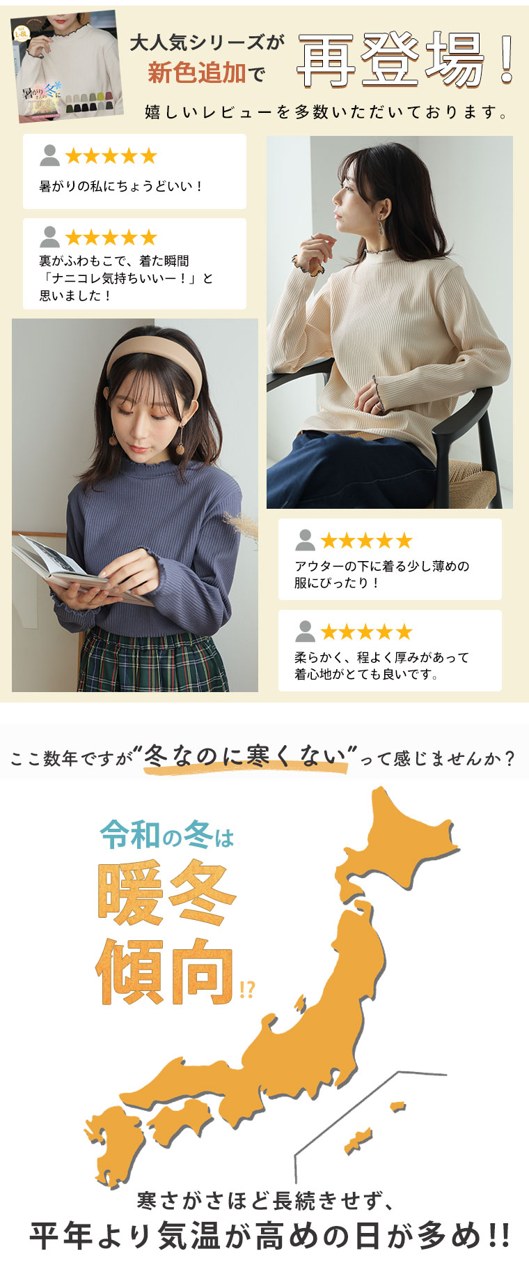 3. 大きいサイズ 新色追加!! 【ちょい温シリーズ】 メロウ ハイネック リブ トップス