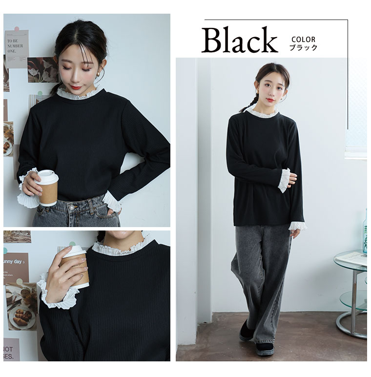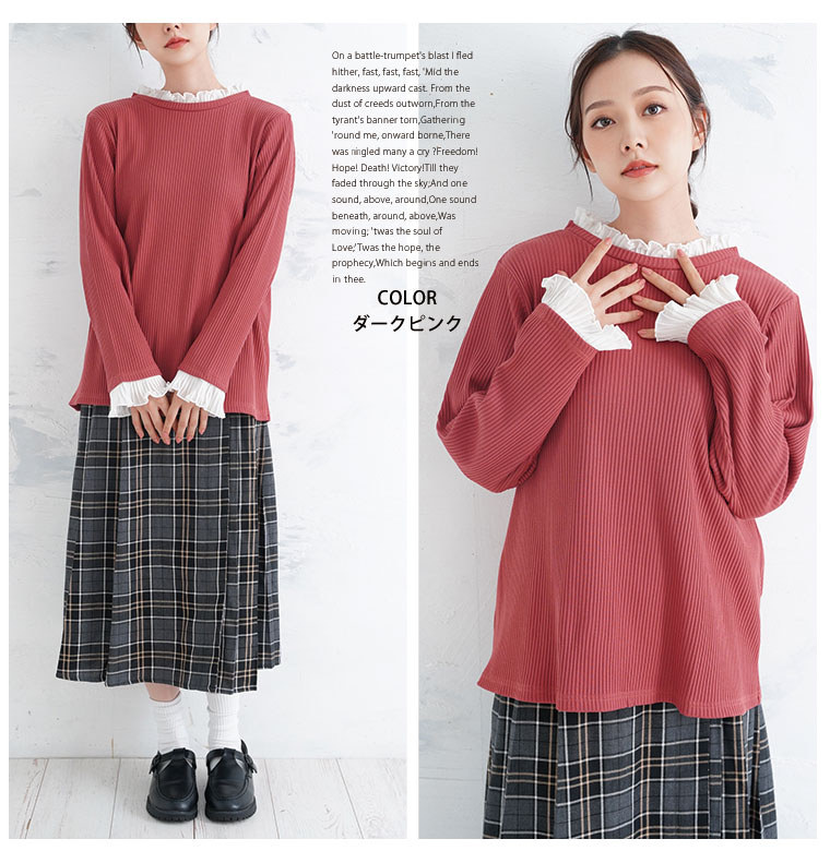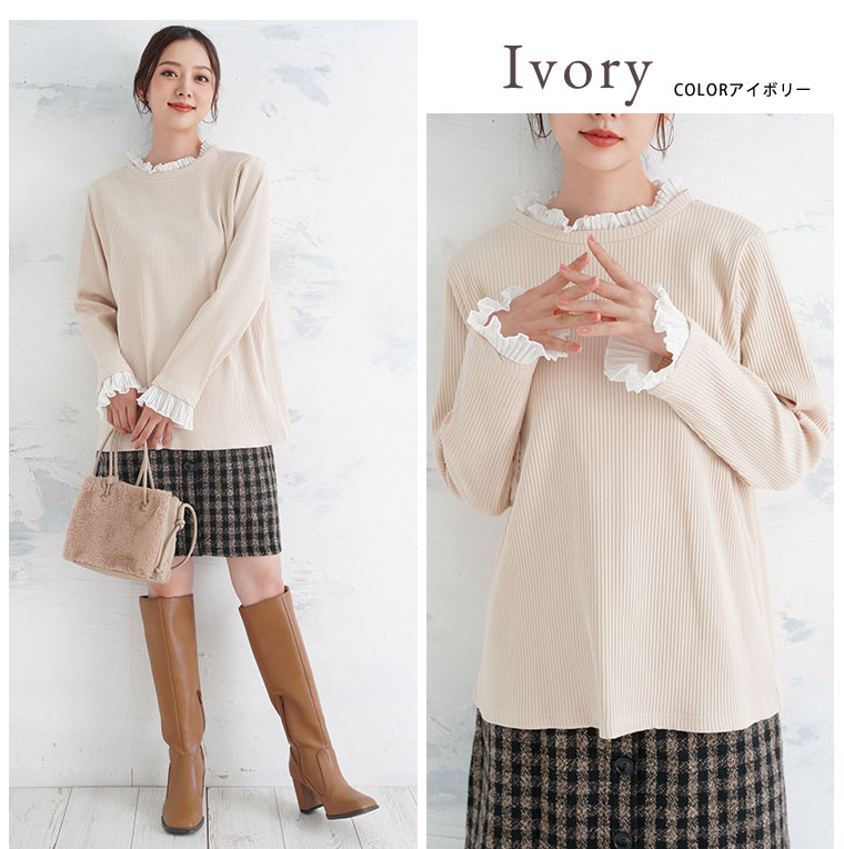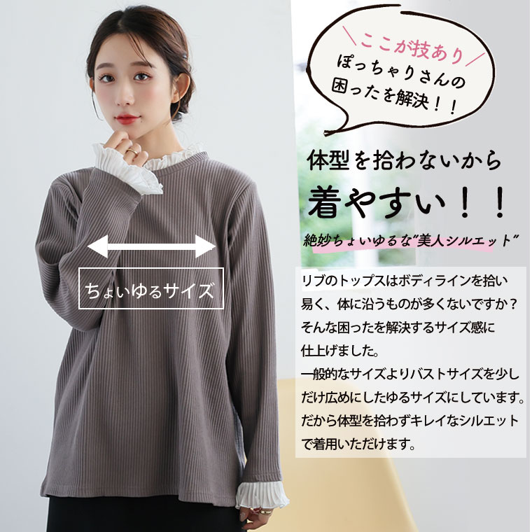 ほどよい暖かさが丁度良い【ちょい温シリーズ】 プリーツフリル切替えリブ トップス