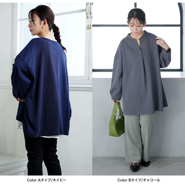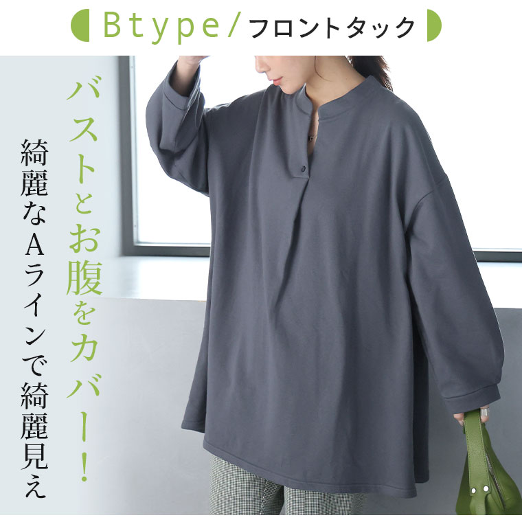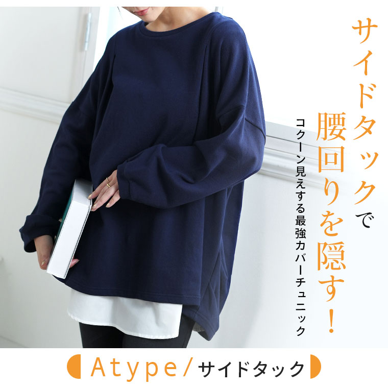 選べる2つのタックデザイン 着痩せる裏毛トップス