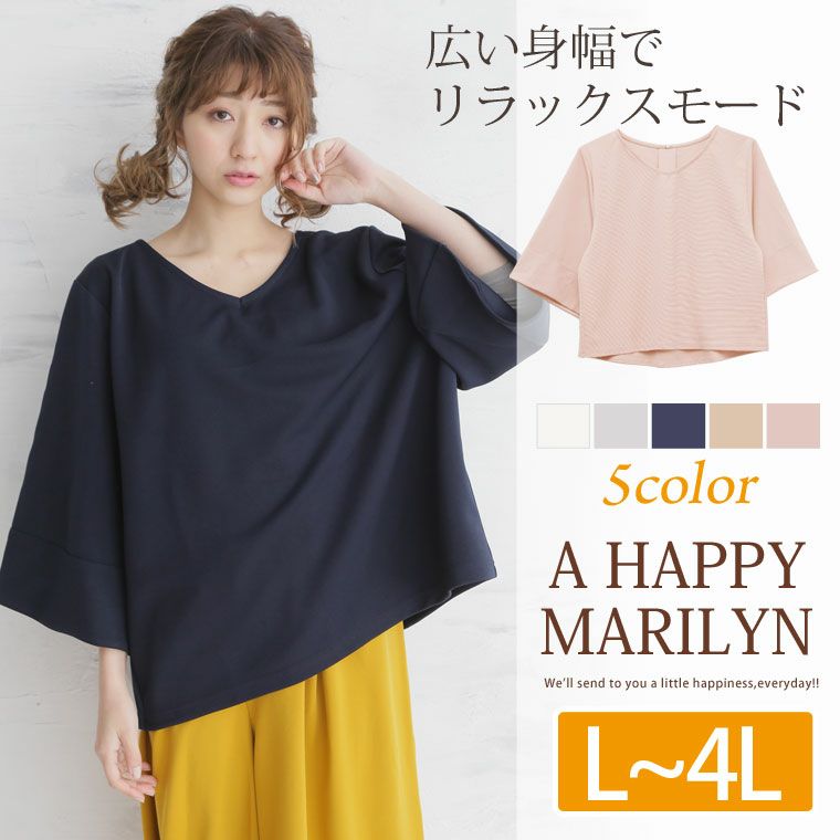ゆったりワイドスリーブで体型カバー◎リップル生地のVネックトップス