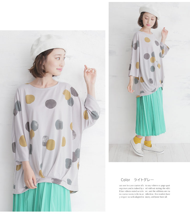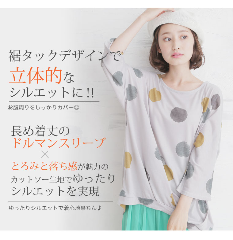 ナチュラルテイストな水彩タッチが可愛い!!裾タックプルオーバー