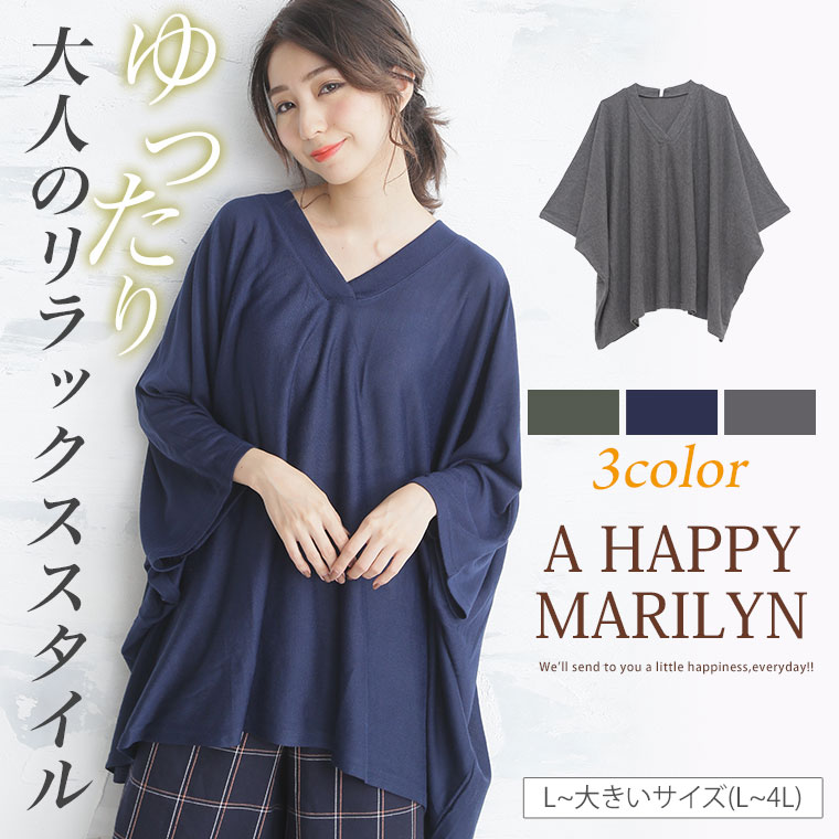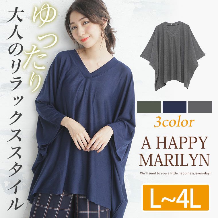 ポンチョ風のシルエットでゆったり着心地。薄起毛ニットソービッグサイズプルオーバー