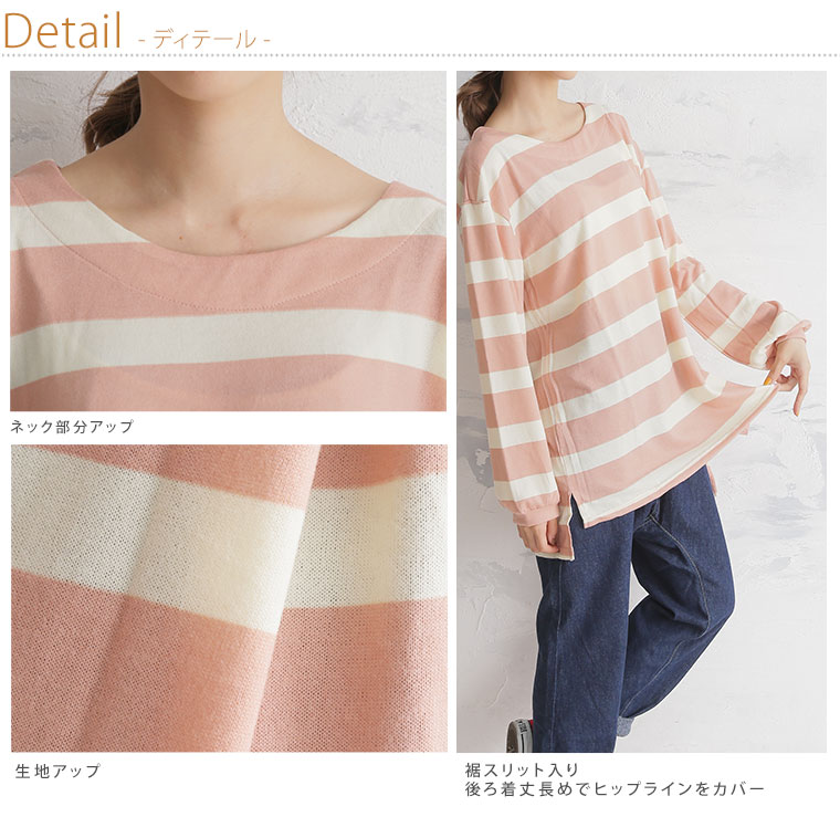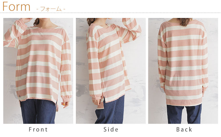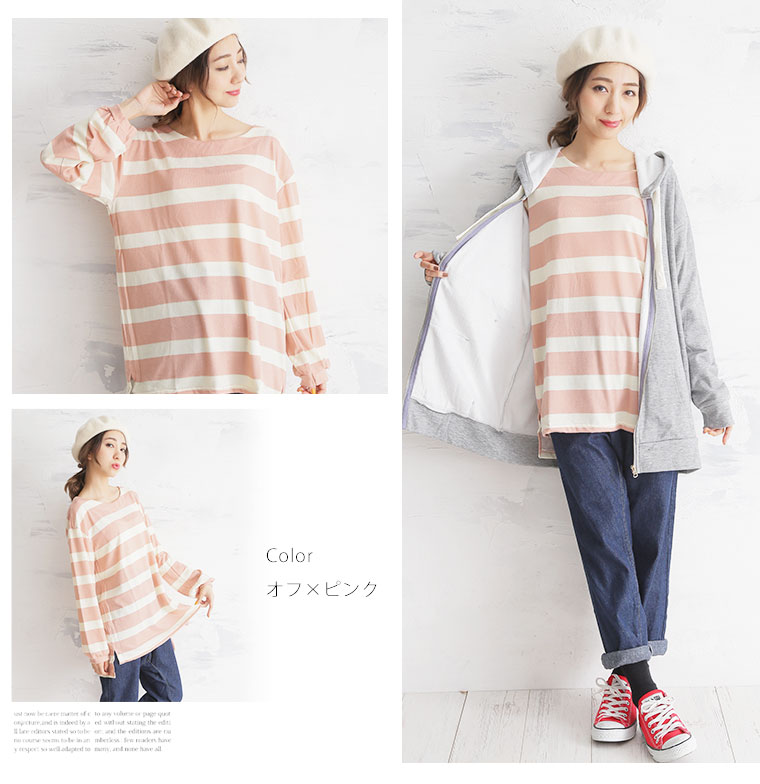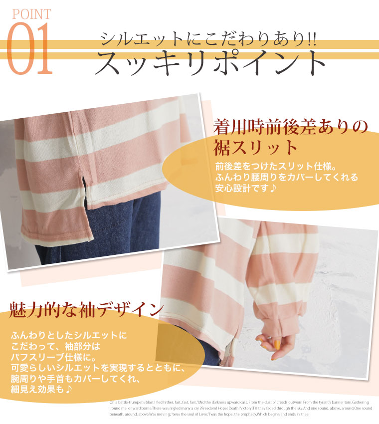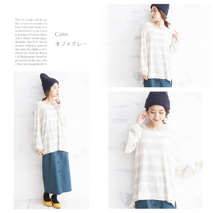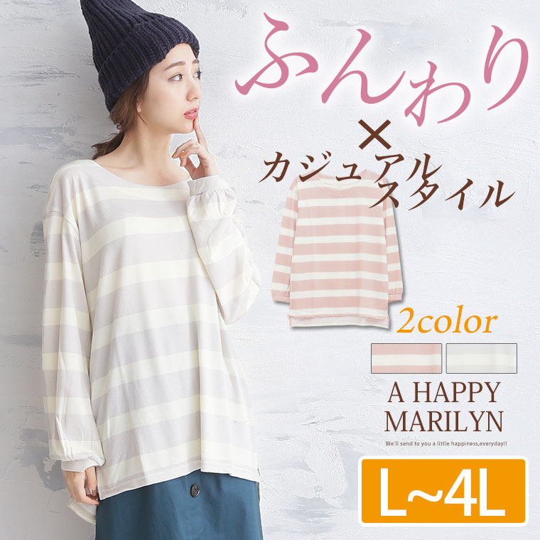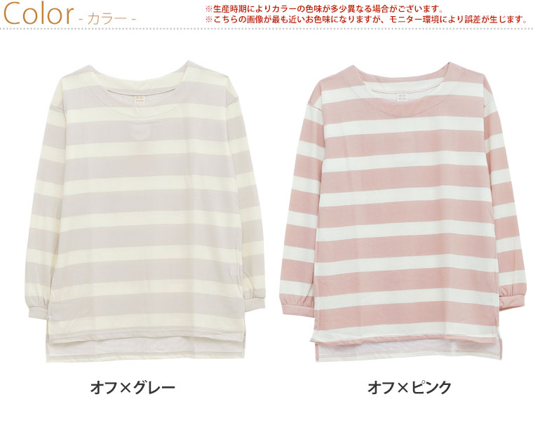 太めのピッチのボーダーでカジュアルなパフスリーブ長袖プルオーバー
