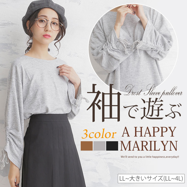 4. 大きいサイズ 裏起毛 ドロストスリーブ 長袖 プルオーバー