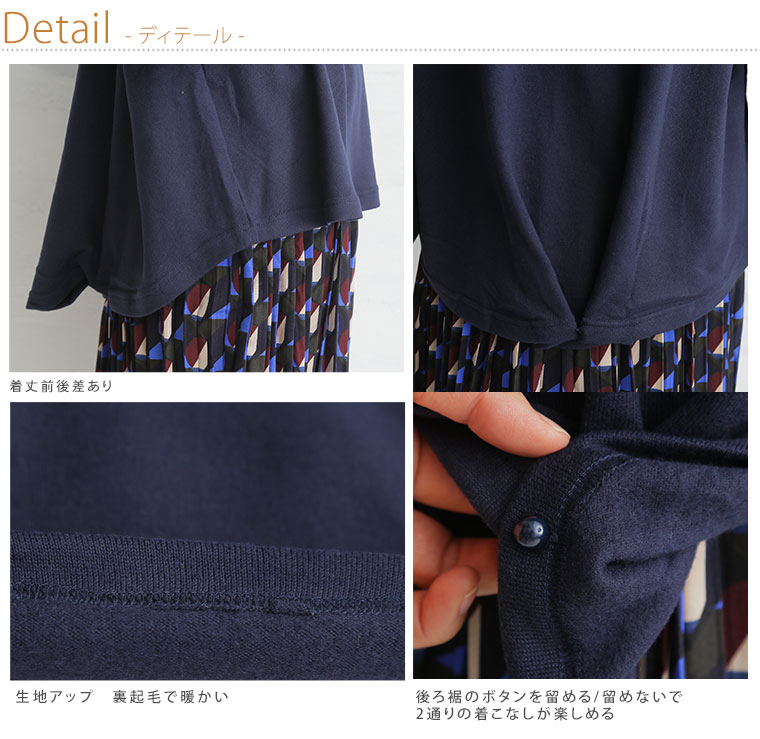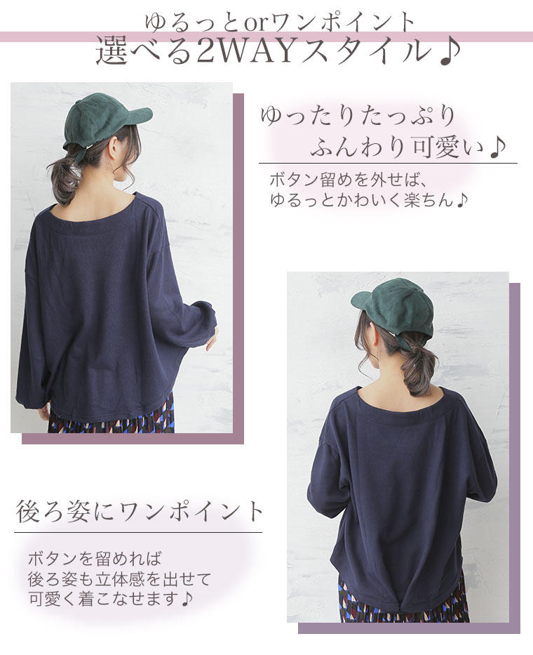 後ろ裾のボタンで2通りの着こなしが楽しめる。2WAY裏起毛長袖プルオーバー